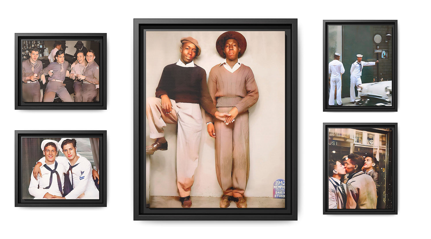 The Vintage Photo Collection is one of the largest online archives of colorized and restored queer vintage photography. These portraits reclaim same-sex love from the margins of history—tearing down the secrecy and shame once imposed on LGBTQ+ lives. Each image affirms that queer connection is not new, deviant, or hidden—it’s always been here: tender, courageous, and deeply human. This collection doesn’t just preserve memories; it restores dignity, challenges erasure, and invites us to see love as it truly was—and still is.