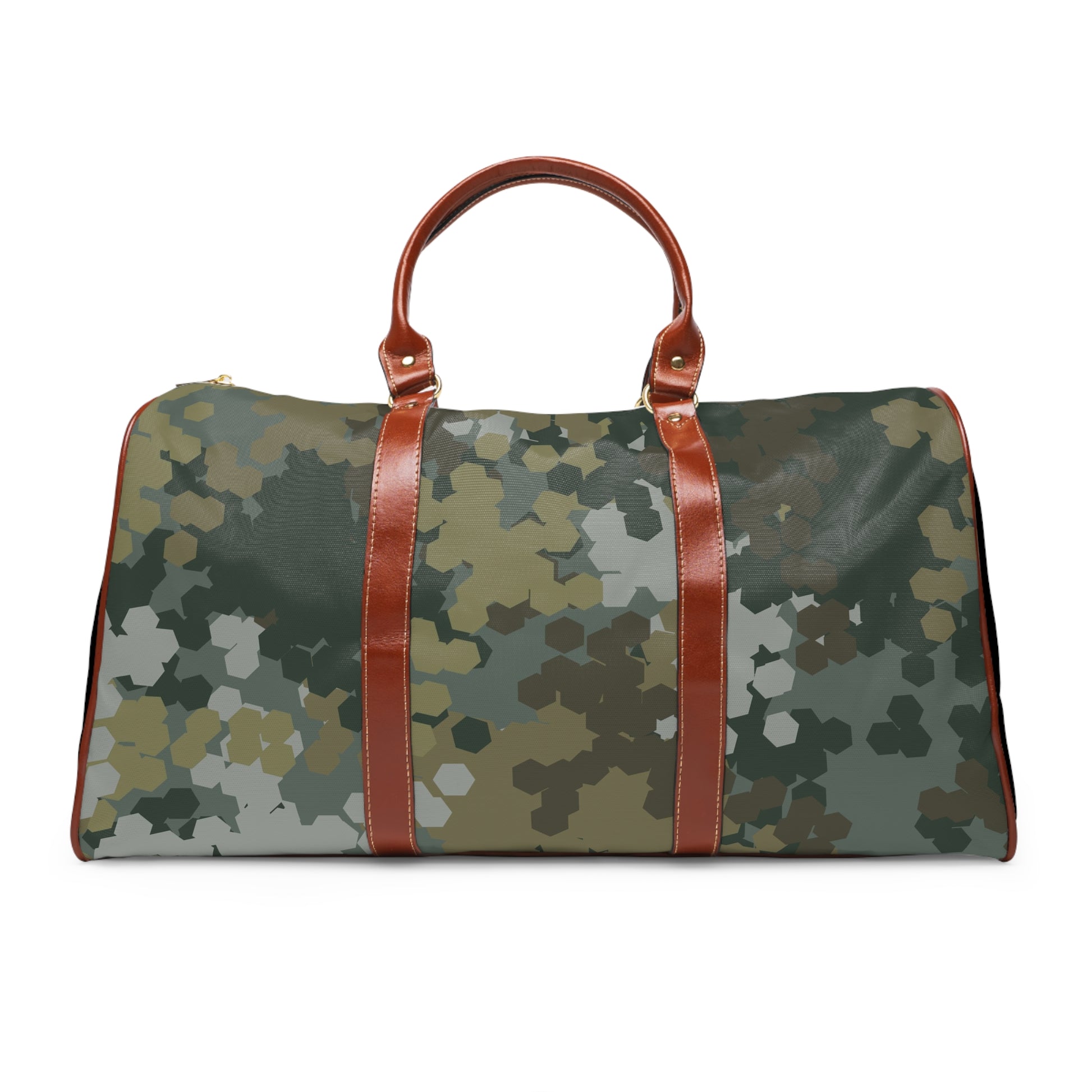 Crafted from 100% high-grade PU leather, this bag is not merely a travel accessory but a statement of authority and endurance; the vintage camouflage pattern design, paying homage to military roots, sets it apart from ordinary travel bags, while the distinctive stag deer on the endcaps adds a touch of exclusivity.
