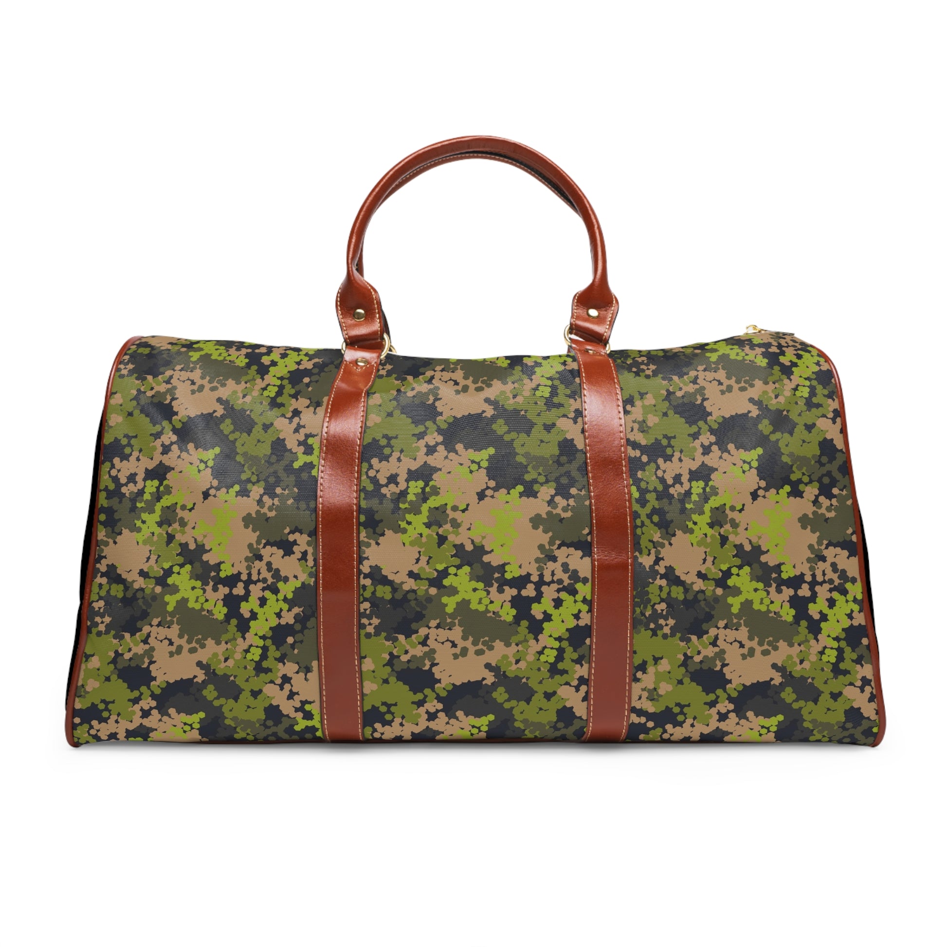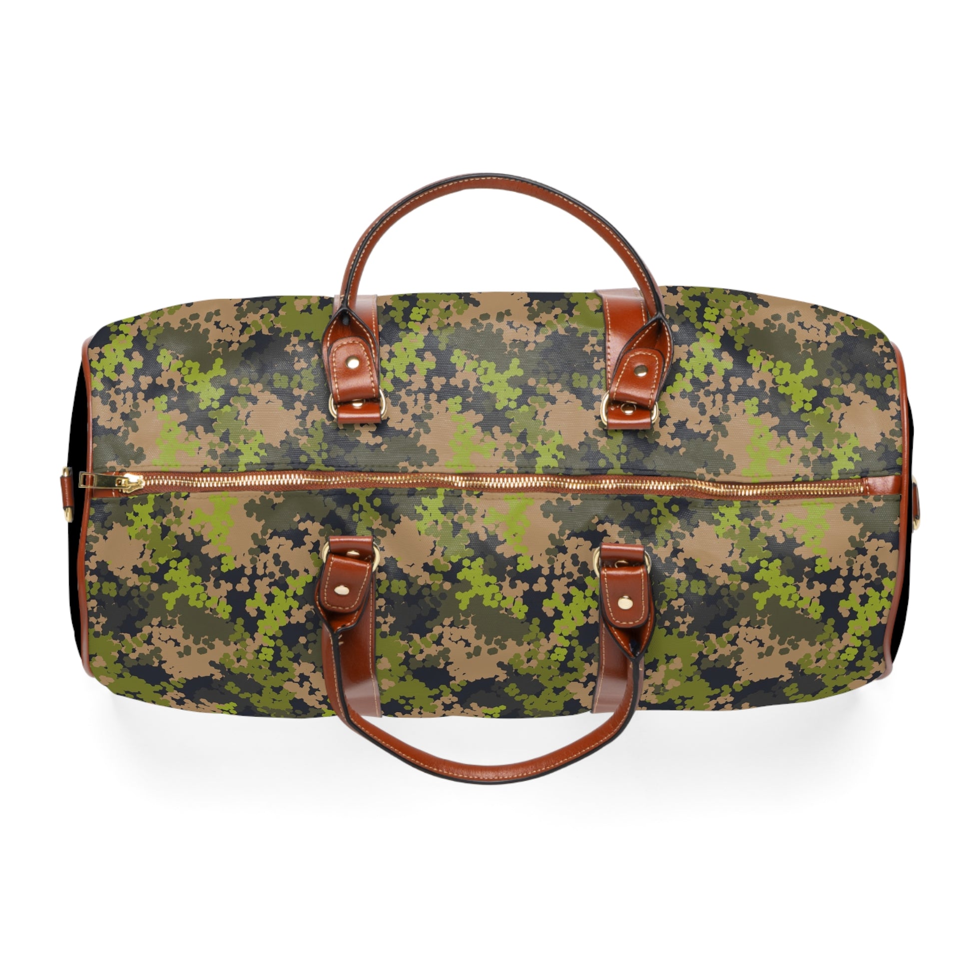 Embark on your journeys with the Fenland Tactical Expeditionary Travel Bag, a symbol of distinguished masculinity inspired by the Army's heritage. This commanding bag features a vintage camouflage design reminiscent of the 1940s, embodying military elegance with our signature stag deer showcased on the endcaps – each silhouette intricately crafted in a vintage camouflage pattern.