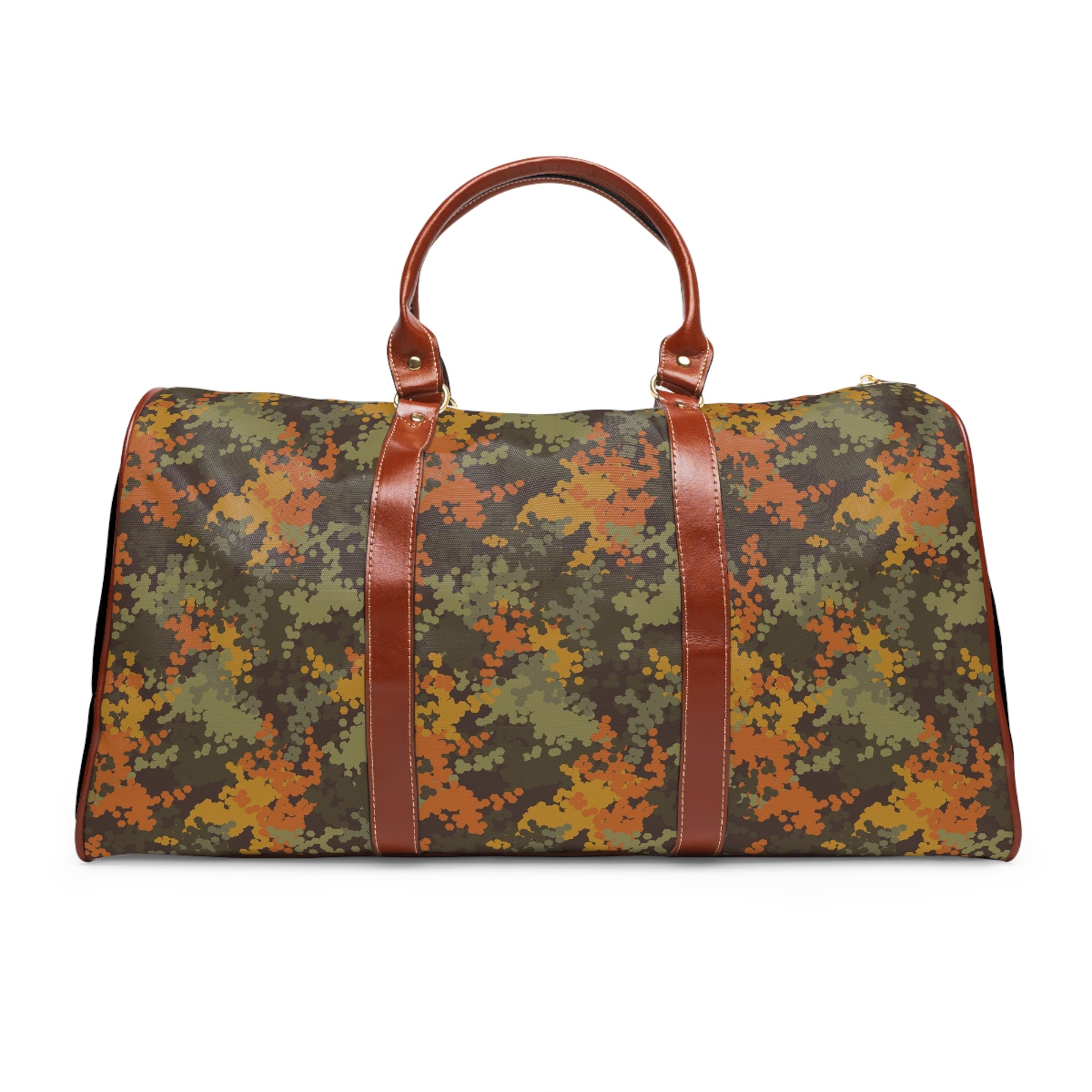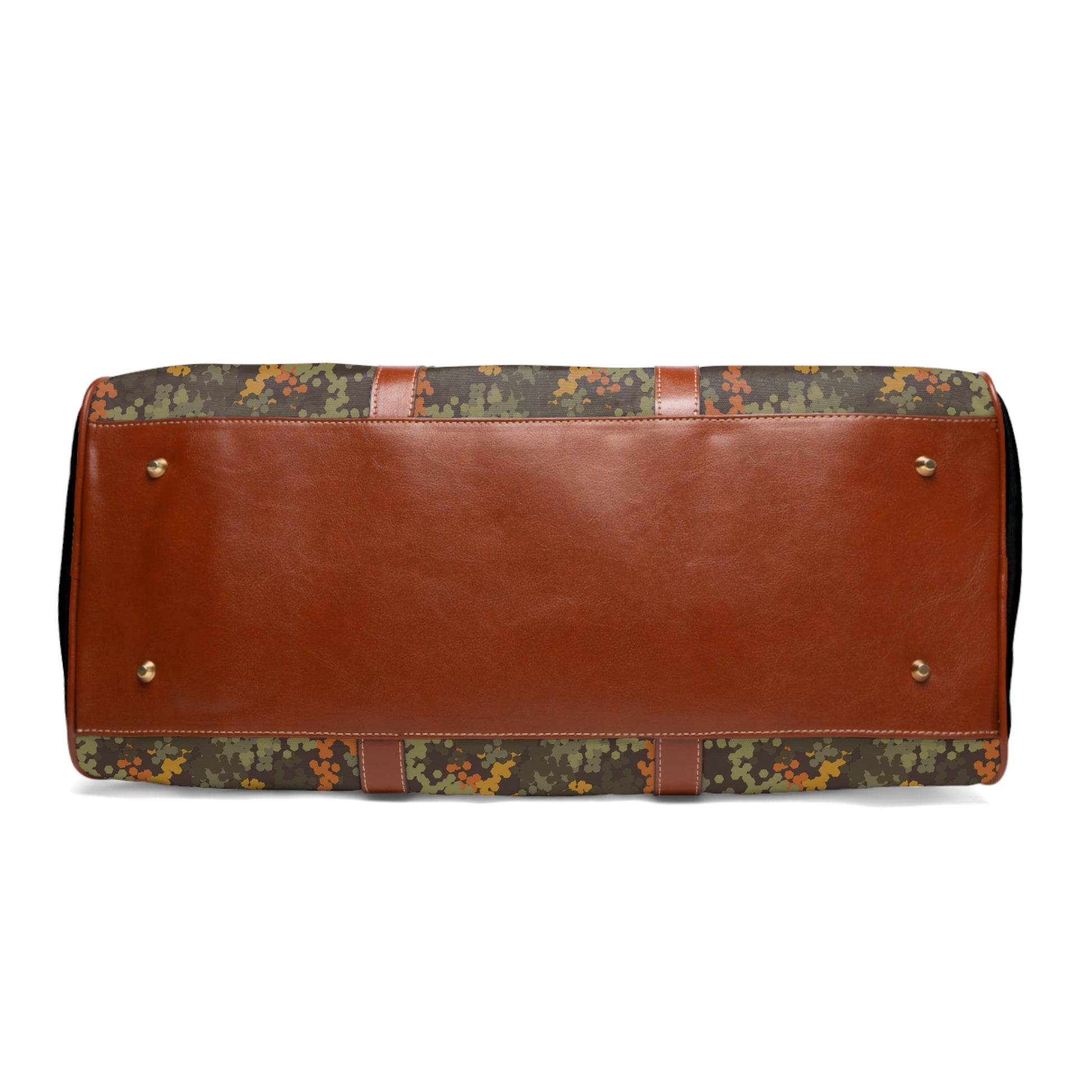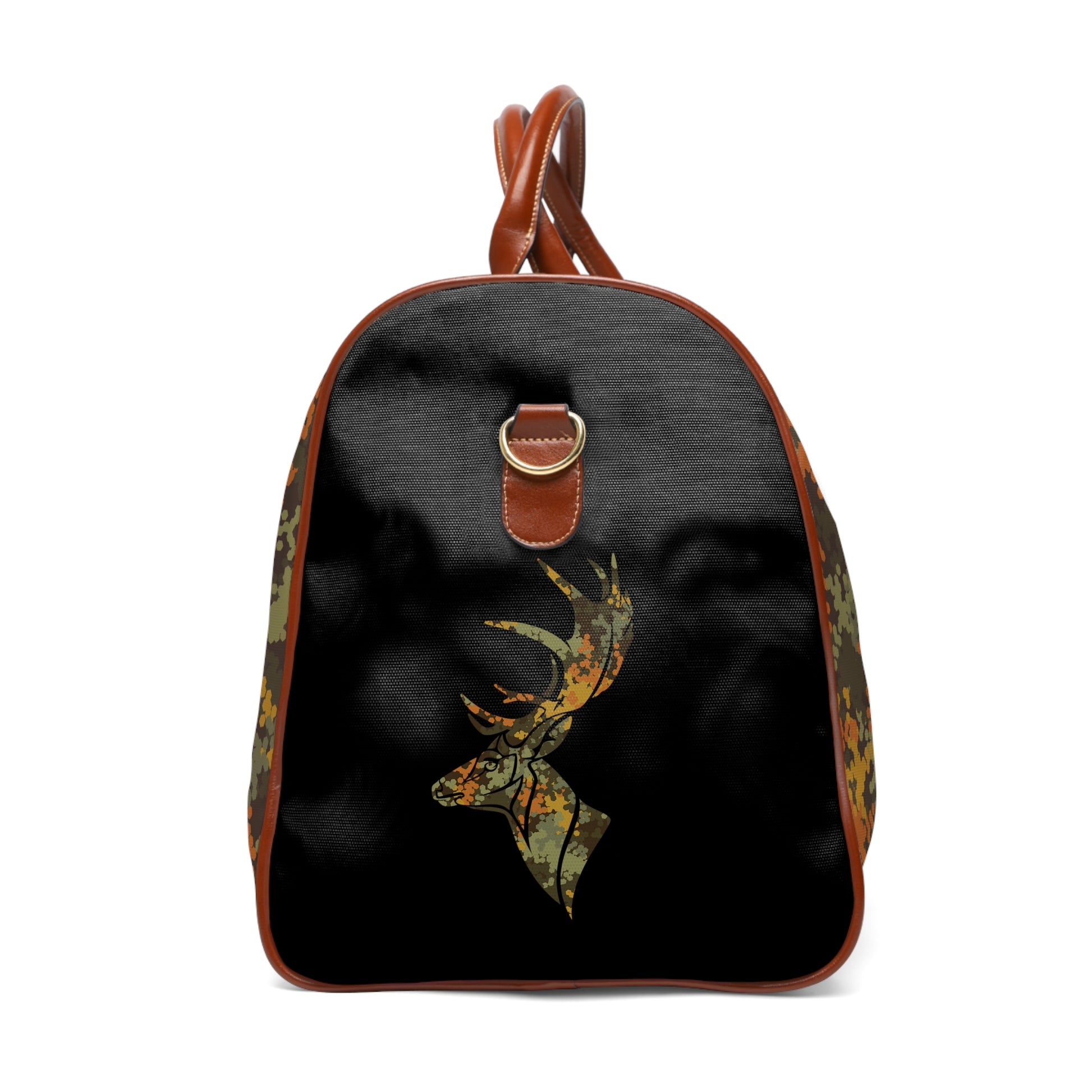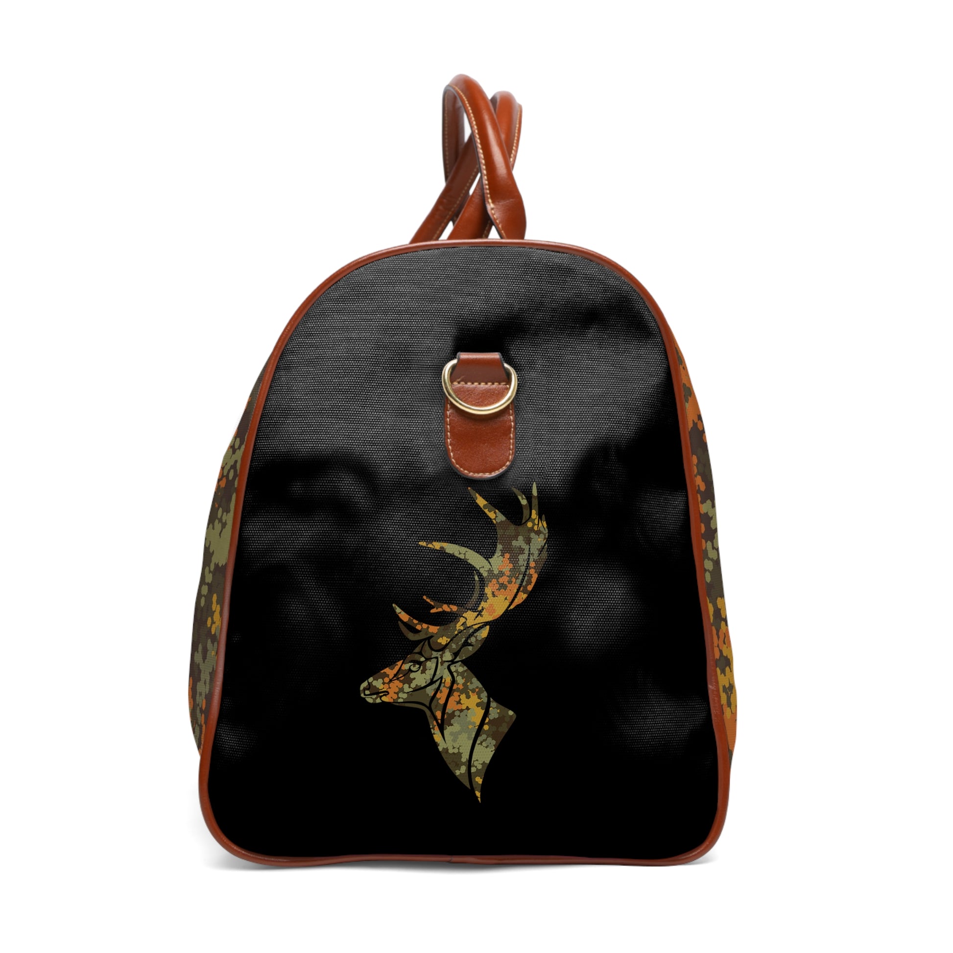 Crafted from 100% high-grade PU leather, this bag is not merely a travel accessory but a statement of authority and endurance; the vintage camouflage pattern design, paying homage to military roots, sets it apart from ordinary travel bags, while the distinctive stag deer on the endcaps adds a touch of exclusivity.