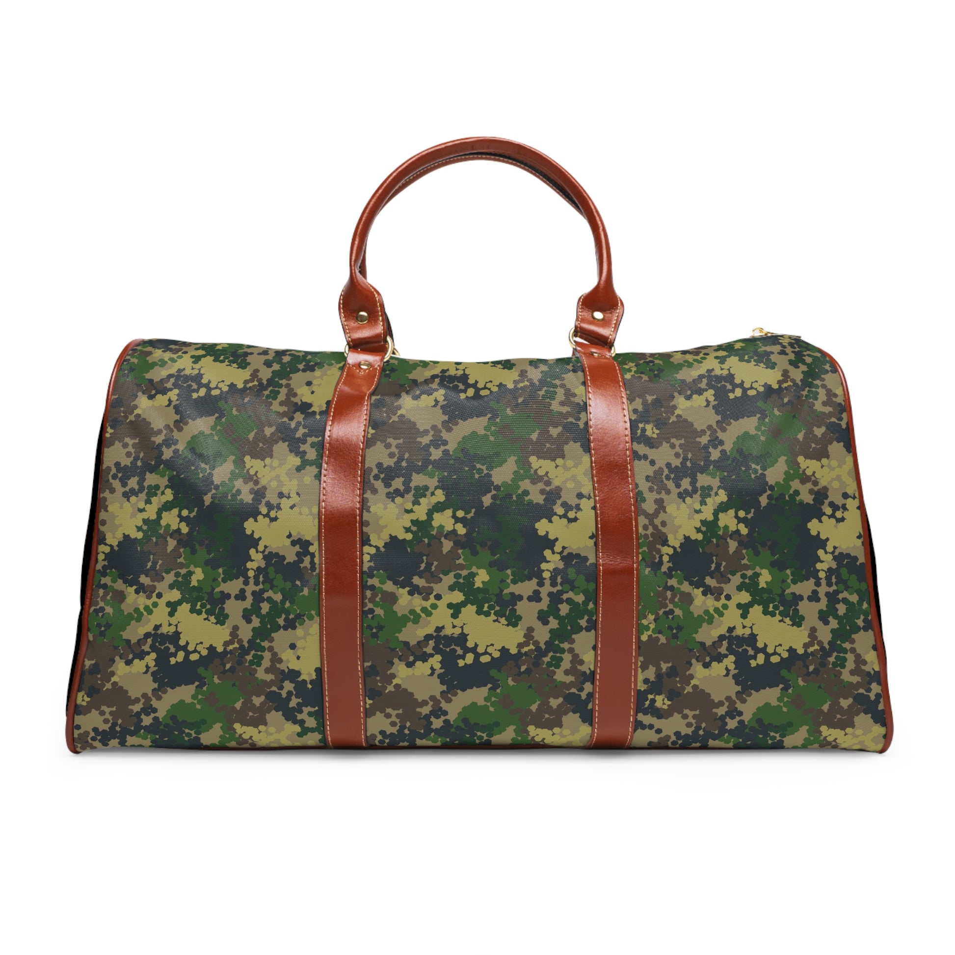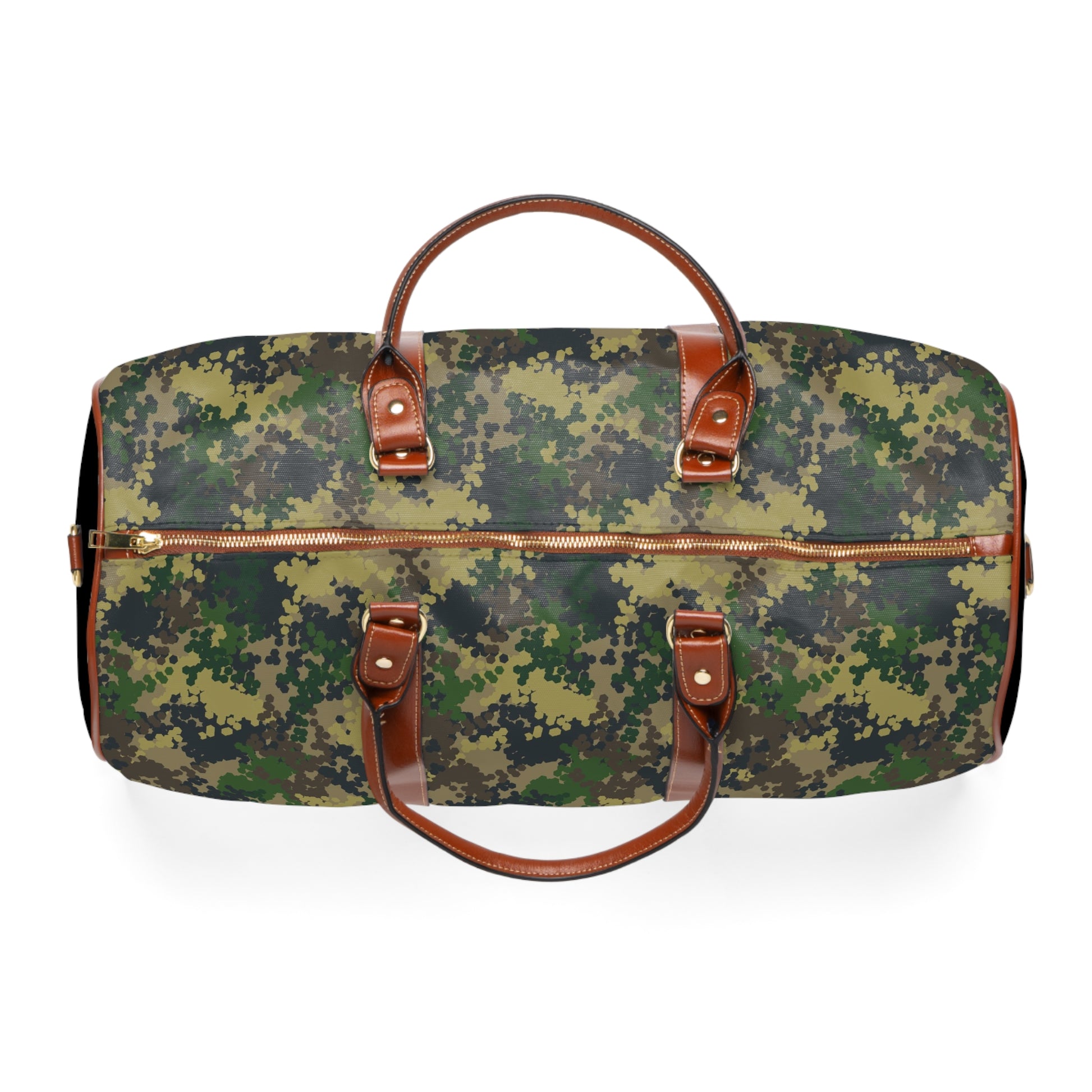 Crafted from 100% high-grade PU leather, this bag is not merely a travel accessory but a statement of authority and endurance the vintage camouflage pattern design, paying homage to military roots, sets it apart from ordinary travel bags, while the distinctive stag deer on the endcaps adds a touch of exclusivity.