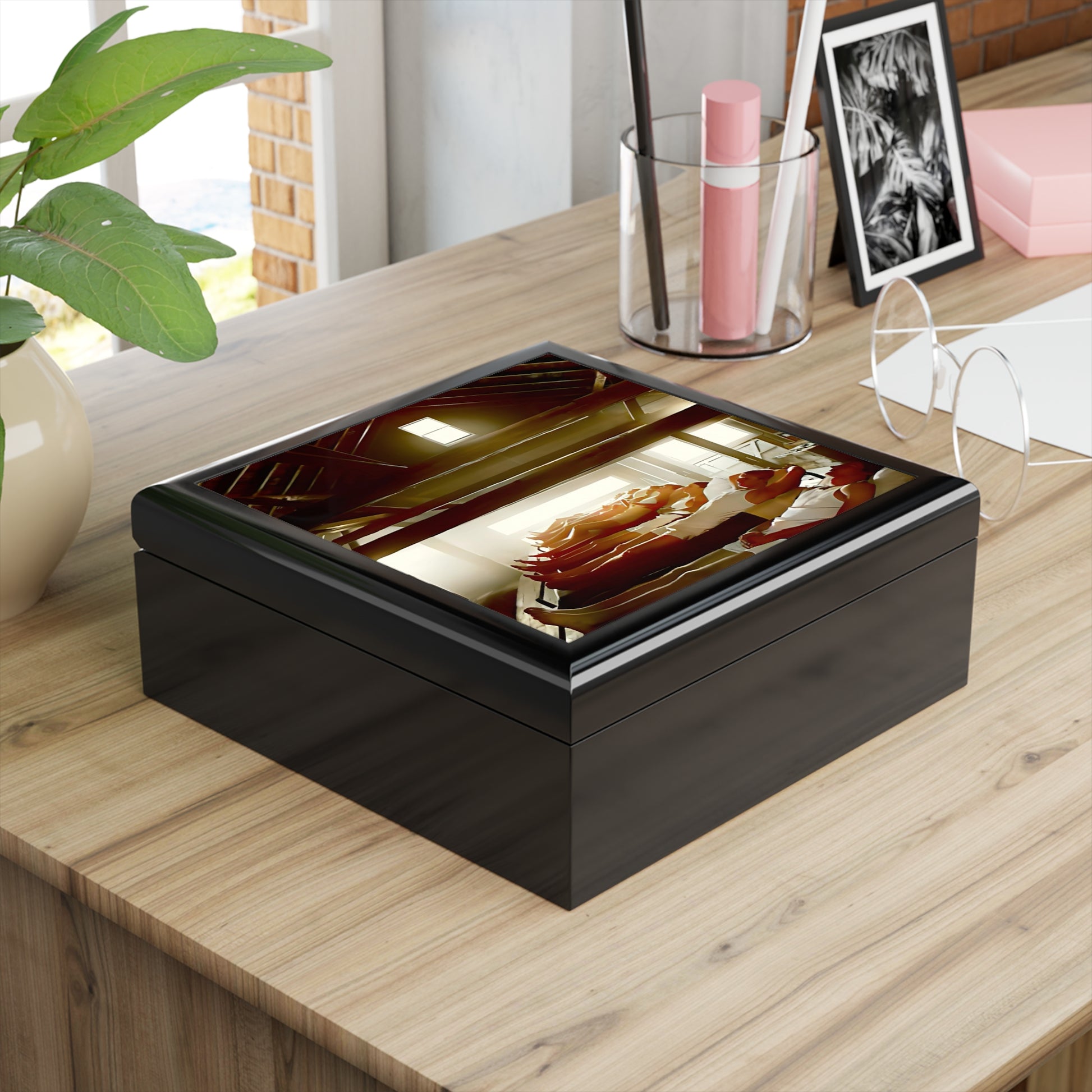 A place to keep that guitar pick you found on the bar floor from your favorite concert or a ticket receipt from your first movie with him. Keep all your mementos safe in custom style with this personalized keepsake box. This keepsake box features dual hinges that lock at 90 degrees, an elegant glossy finish, and a soft interior lined with felt material.