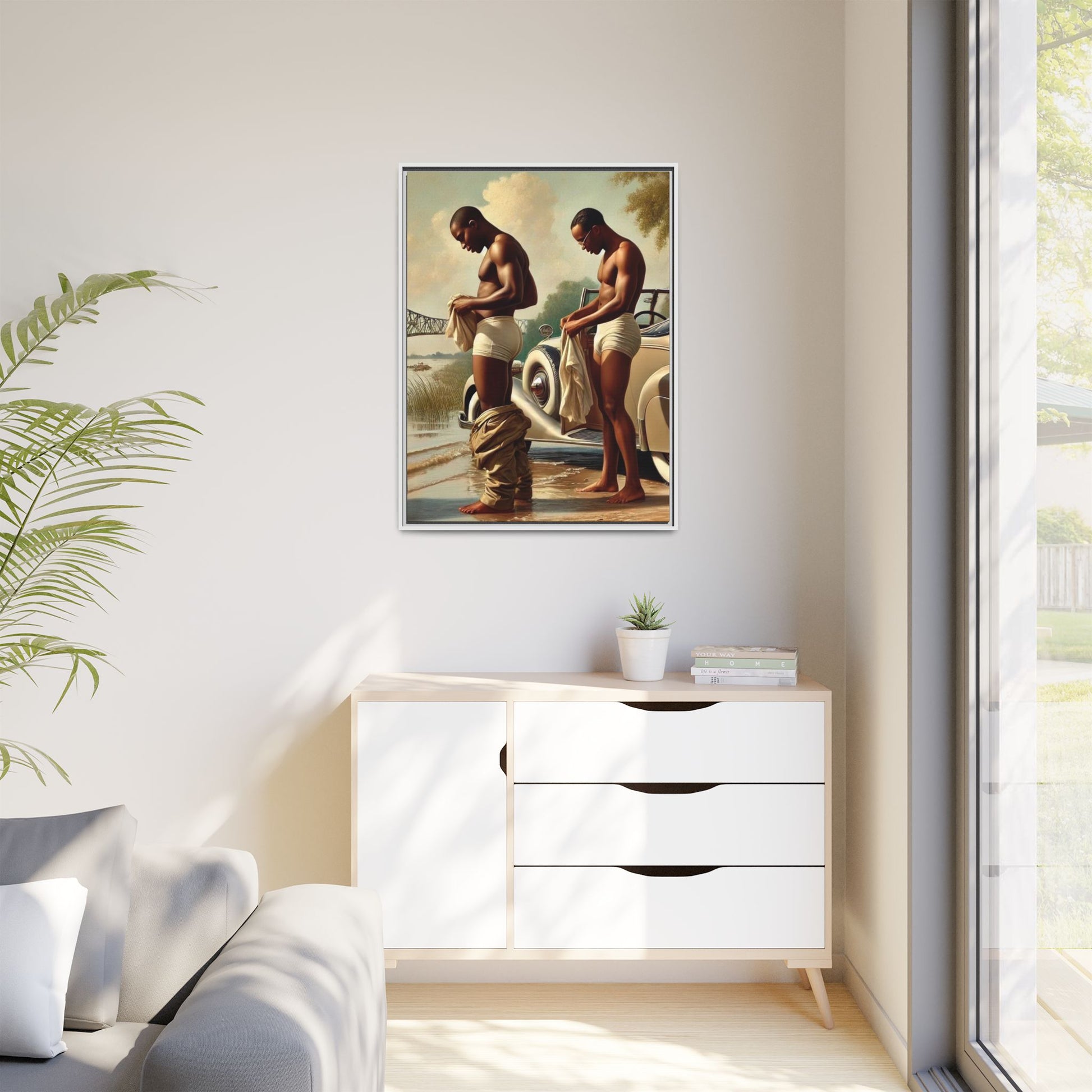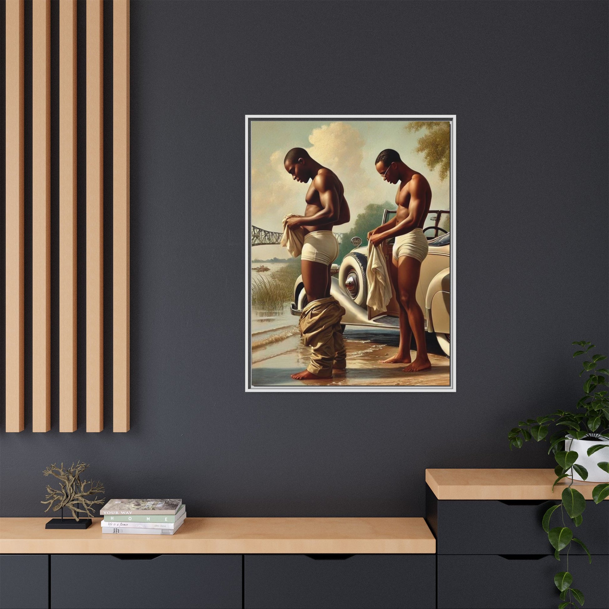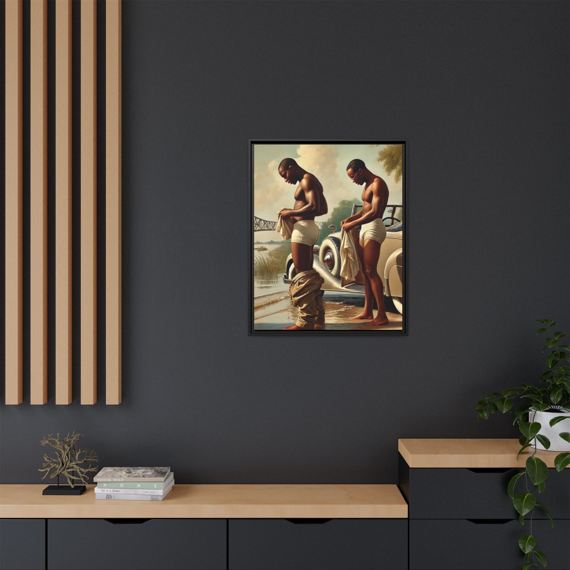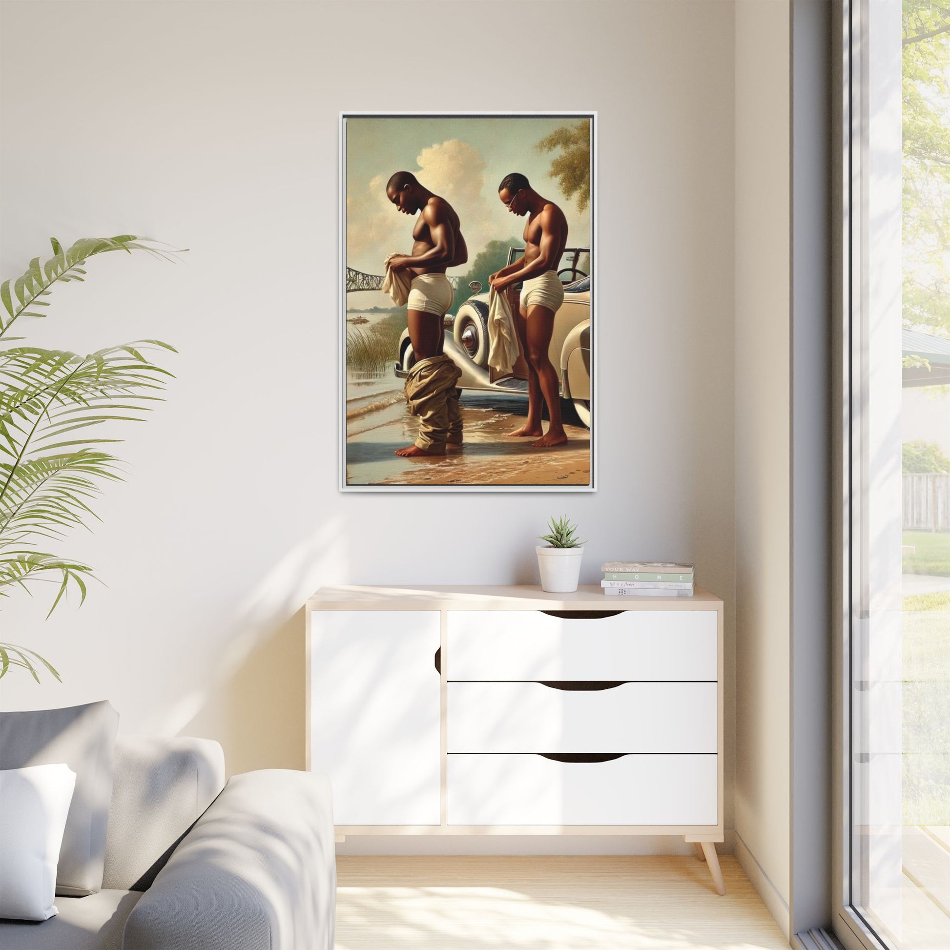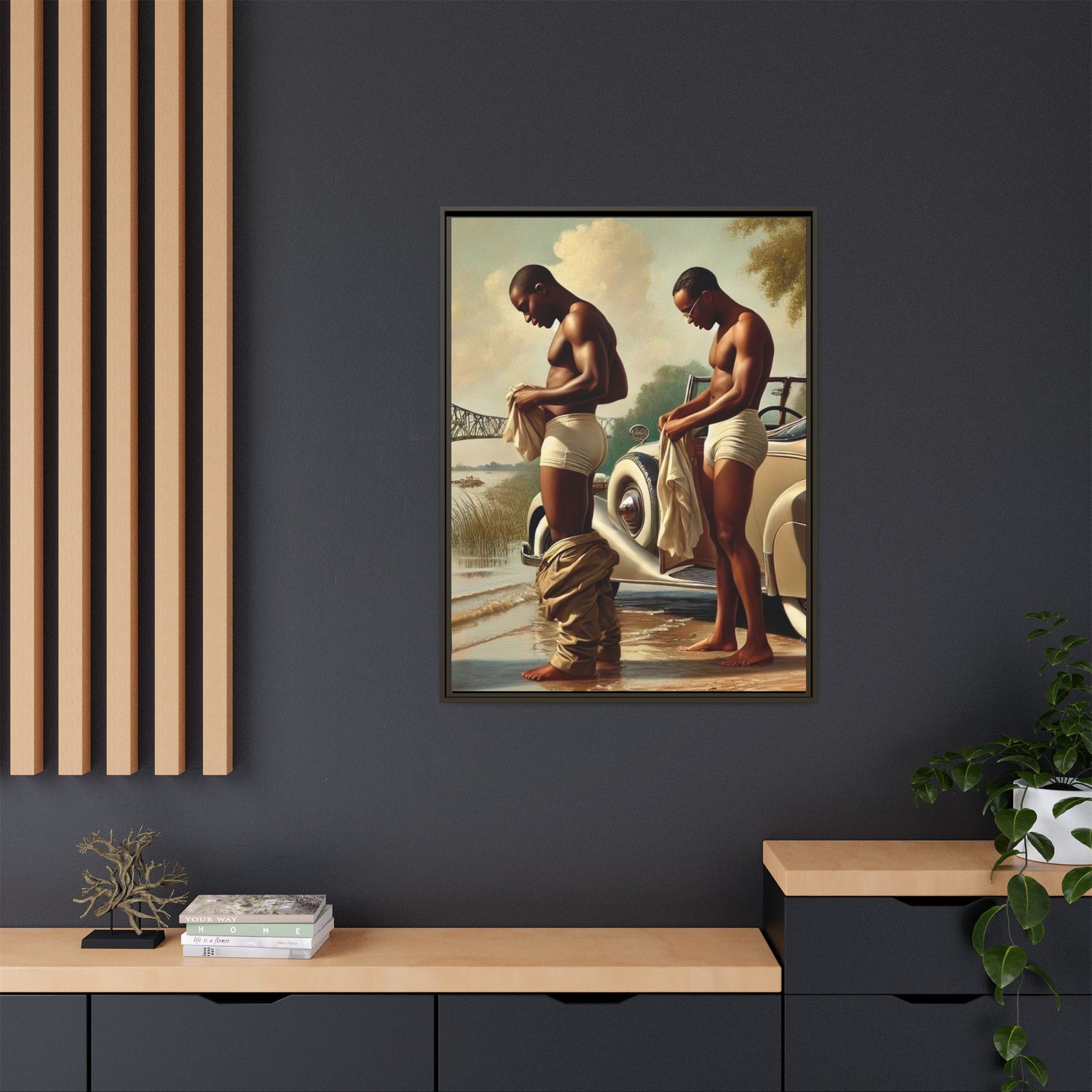 This artwork celebrates not only African-American heritage but also the enduring love and resilience of LGBTQ+ relationships throughout history. The Mississippi River, with its rich cultural significance, grounds the scene in a powerful narrative of identity, freedom, and romance. Perfect for collectors and admirers of vintage art, this piece captures the elegance of early 20th-century design while honoring the stories and voices of its time.