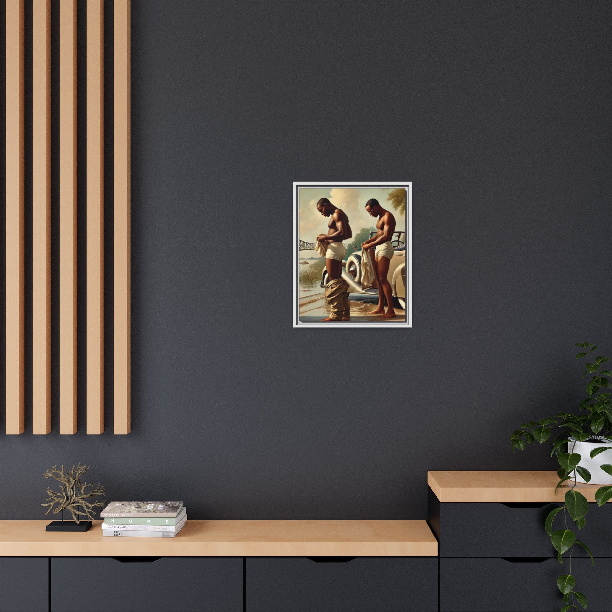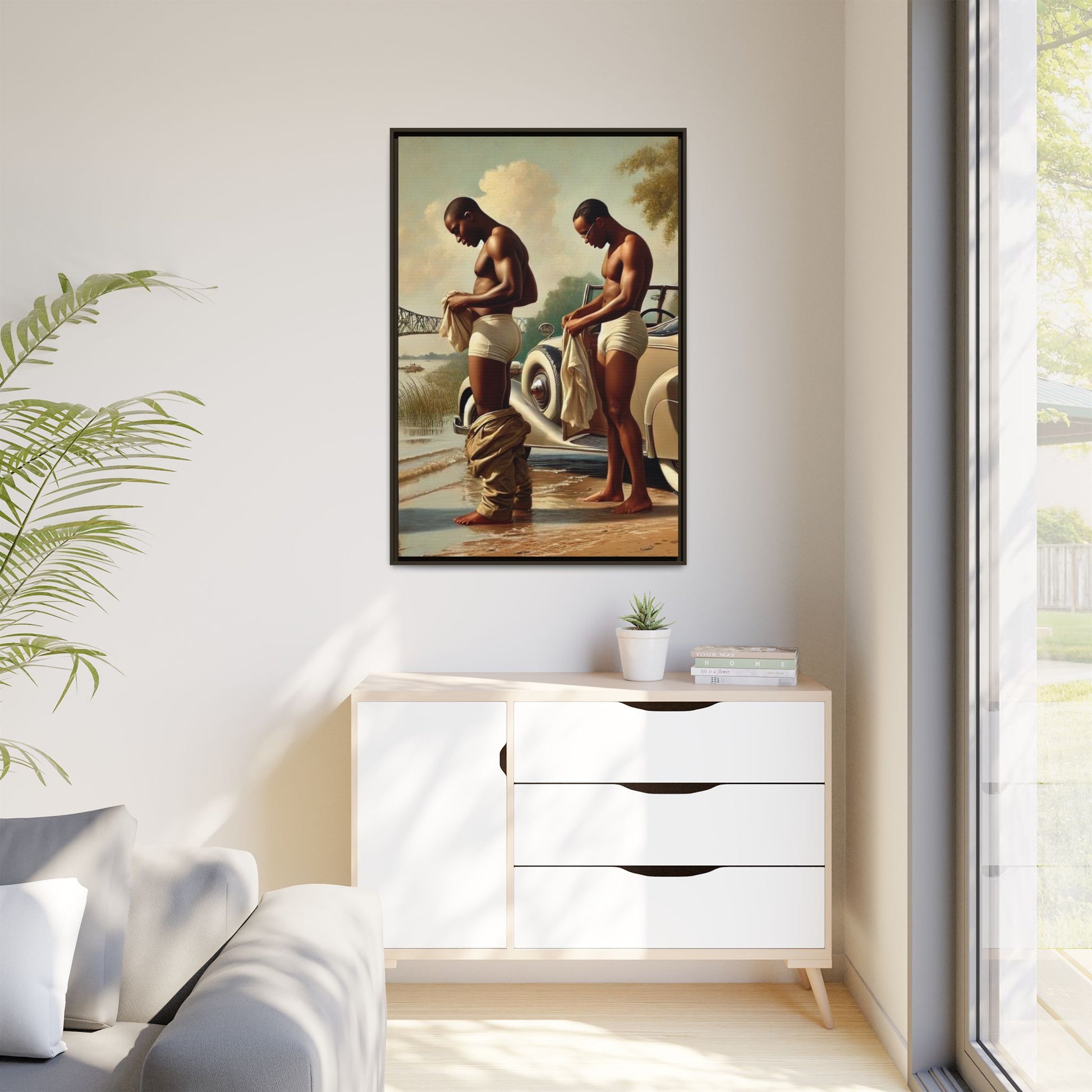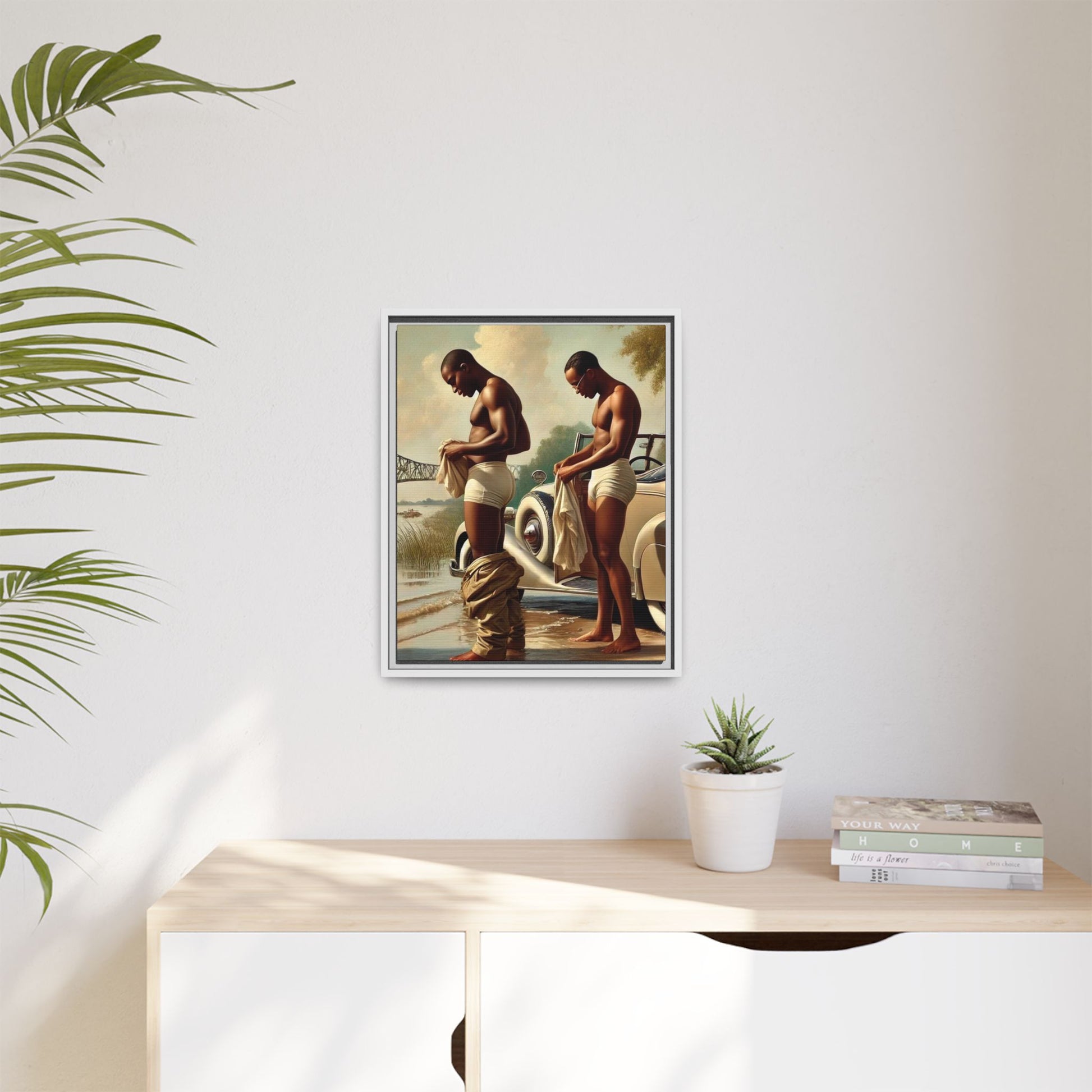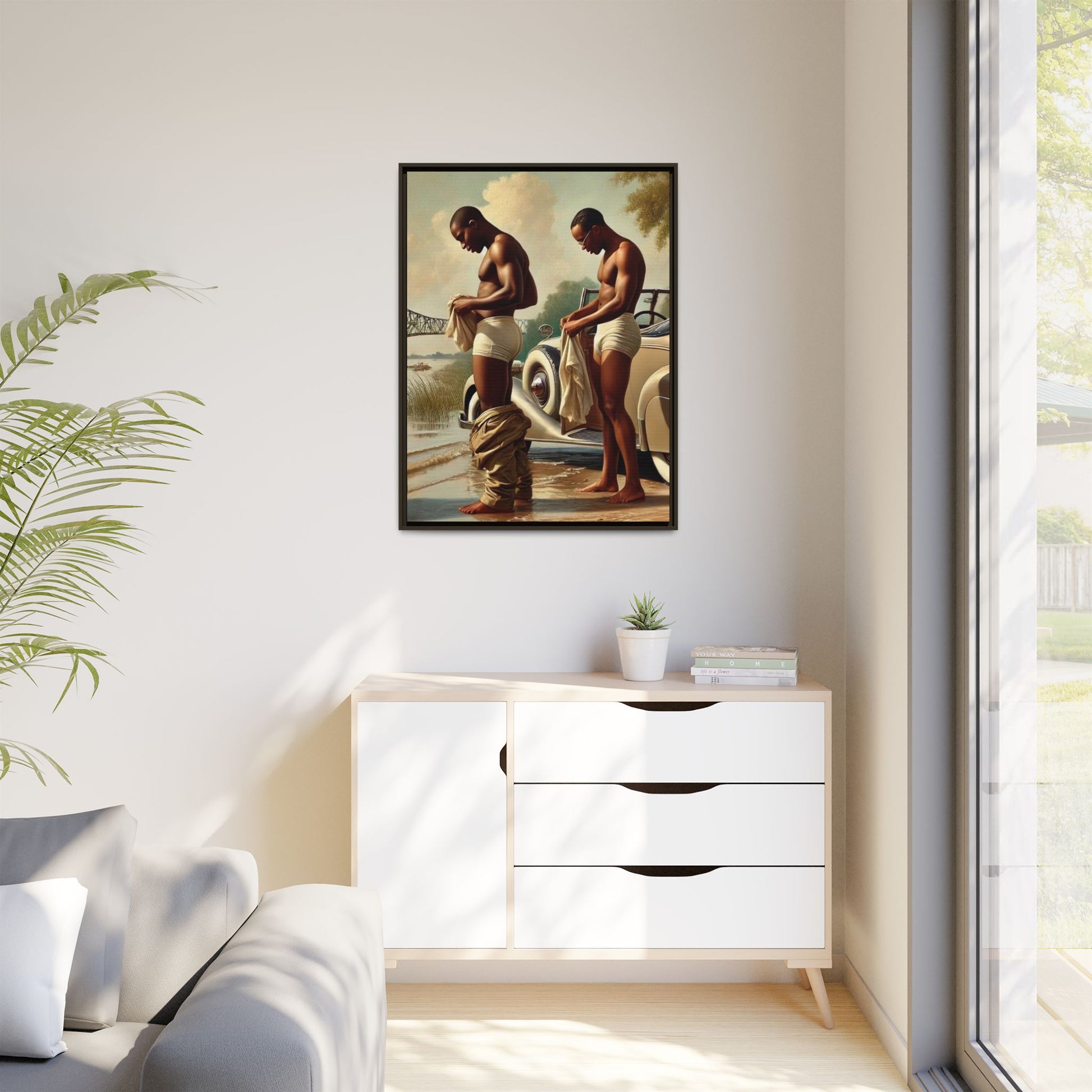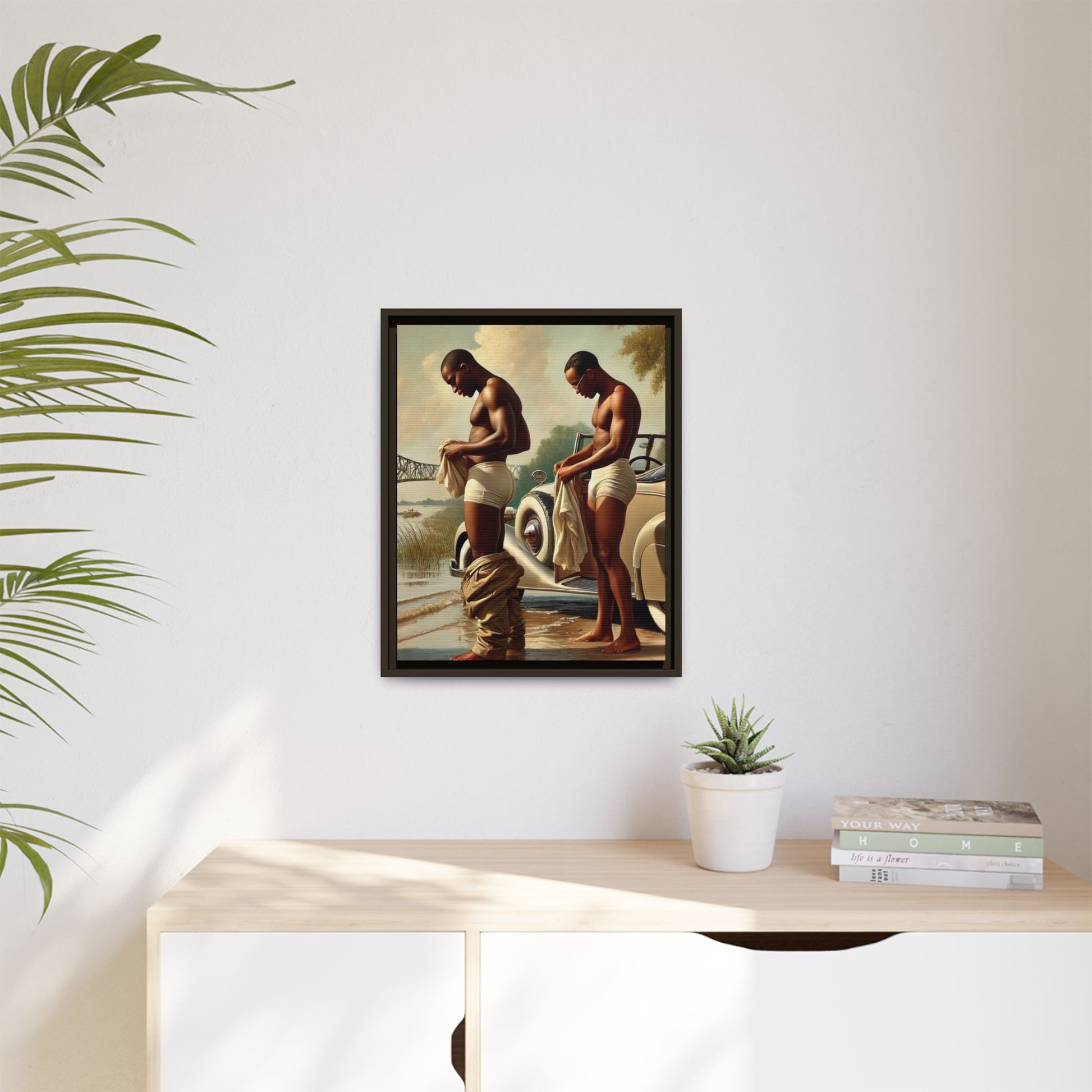 This artwork celebrates not only African-American heritage but also the enduring love and resilience of LGBTQ+ relationships throughout history. The Mississippi River, with its rich cultural significance, grounds the scene in a powerful narrative of identity, freedom, and romance. Perfect for collectors and admirers of vintage art, this piece captures the elegance of early 20th-century design while honoring the stories and voices of its time.