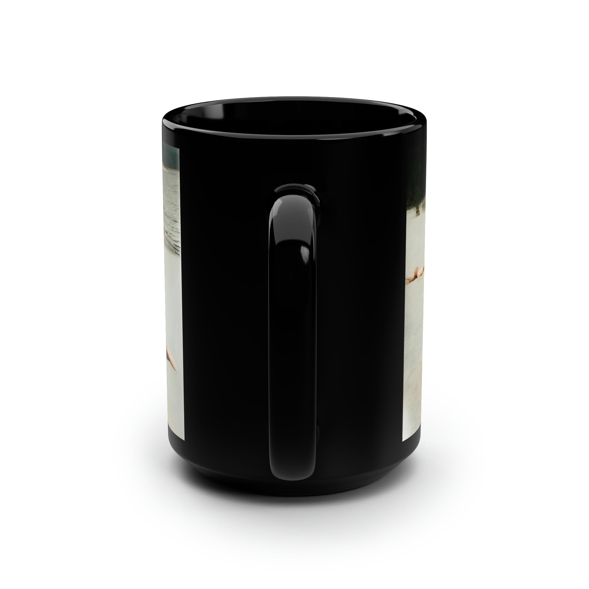 These black mugs come in one size – 15oz (0.44l) – plenty for morning caffeine boosts and hot cups of tea on a rainy day. They're easy to grip and feel sturdy thanks to the C-shaped handle. Add more personality by decorating them with your original designs. They'll be printed on the black ceramic material in picture-perfect quality with a glossy finish.
