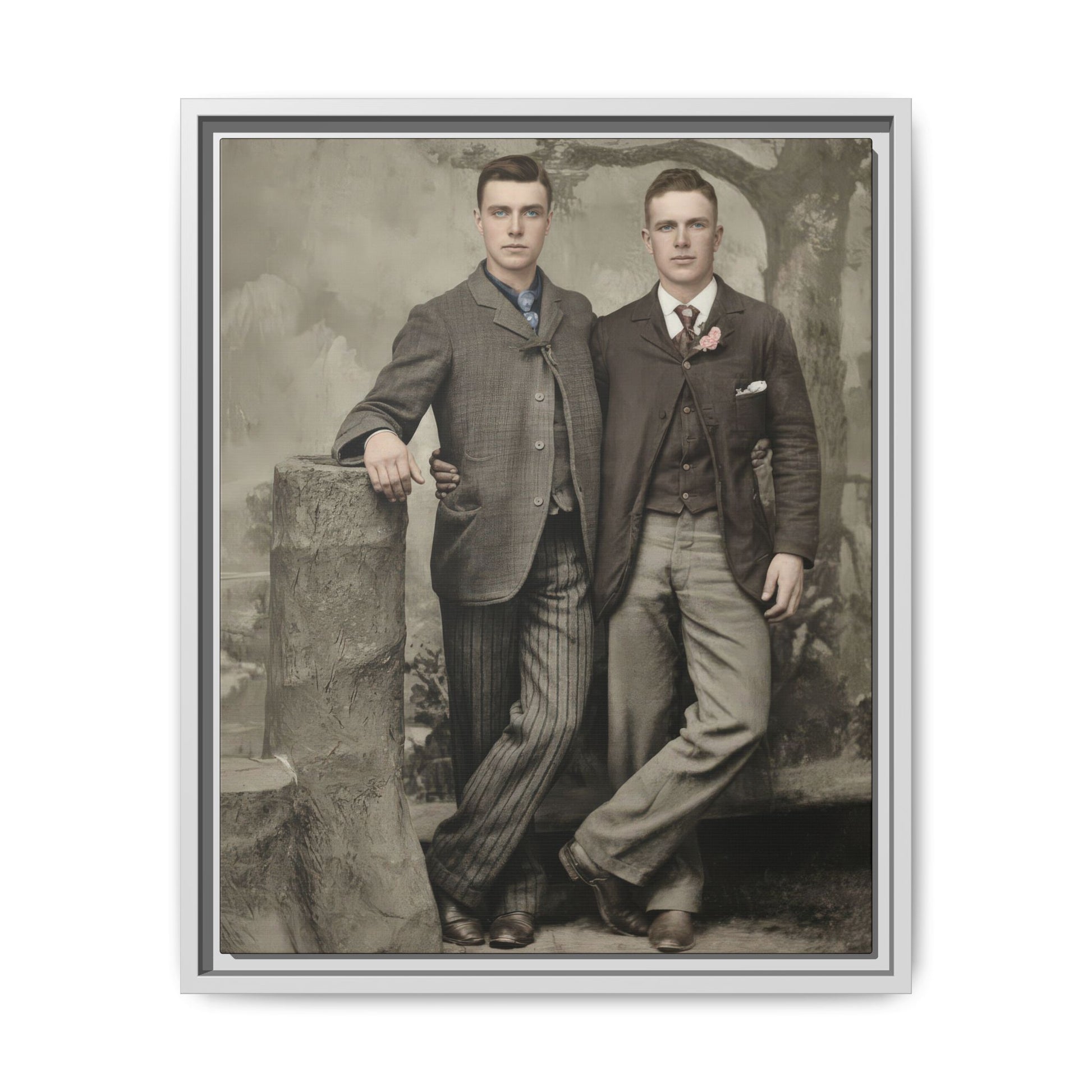 The image presented here has undergone careful digital preservation using contemporary restoration technologies, including AI-assisted stabilization, tonal repair, and historical colorization. All interventions were guided by archival photo conservation principles and fine-art print standards, with the aim of maintaining period character, photographic softness, and material authenticity while improving legibility for modern viewers. It stands as a testament to both the layered ways intimacy was lived and recorded in the past and to the evolving methods used to safeguard fragile visual history in the present.