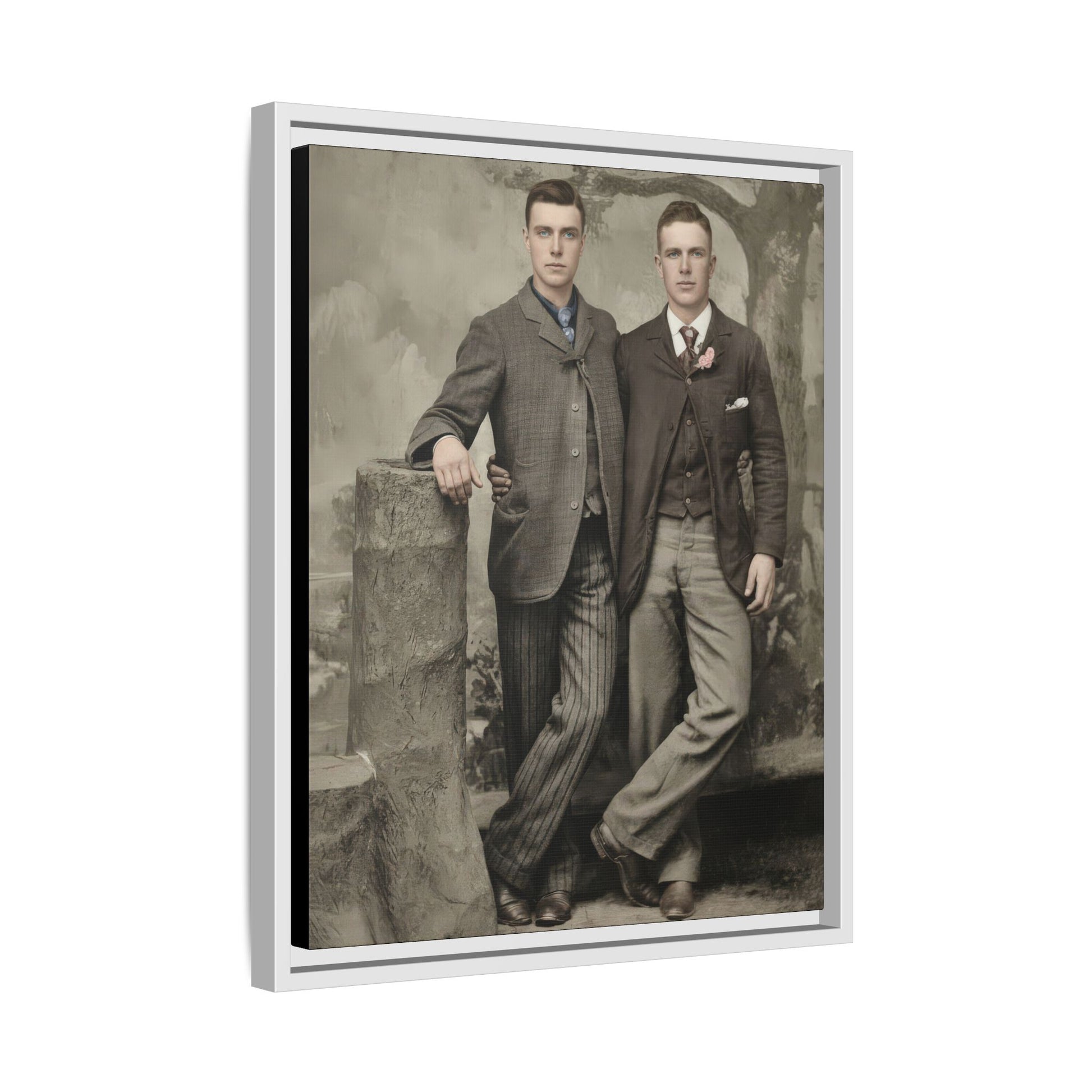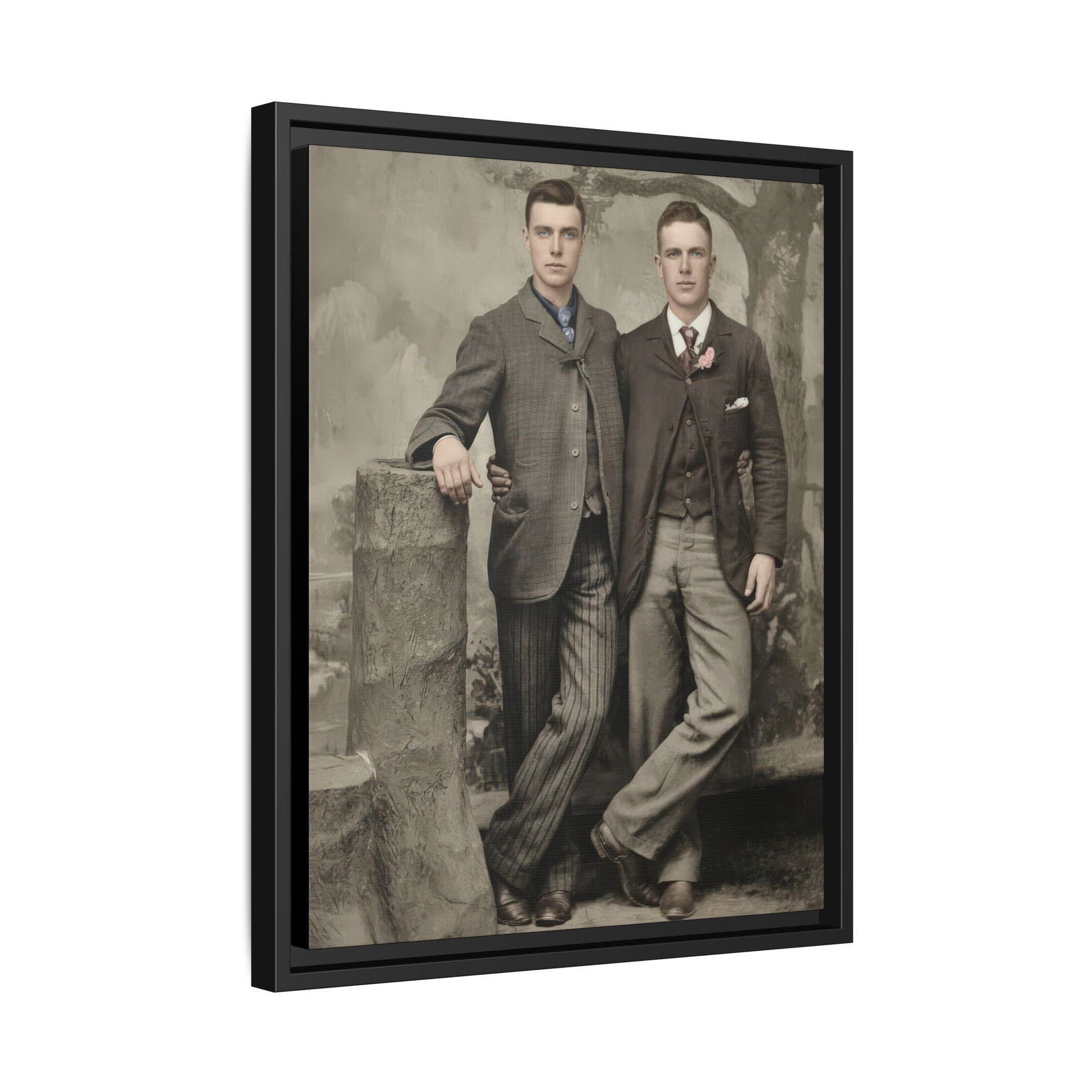 This vintage photograph is part of the Ephemera of Us: Vintage Photo Collection, within the section titled “paire” — the French word for “pair.” The designation reflects the presence of two men pictured together in a moment of visible closeness. While it is impossible — and historically inappropriate — to determine the sexuality or personal identities of the individuals depicted, the composition conveys a quiet intimacy through gesture, proximity, and shared gaze. Such images have often been described by scholars as representations of “affectionate men,” a visual category that acknowledges documented forms of male tenderness and companionship in earlier eras. Whether understood as friendship, kinship, or something more personal, the photograph preserves a moment of male relational closeness that challenges modern assumptions about emotional expression between men.