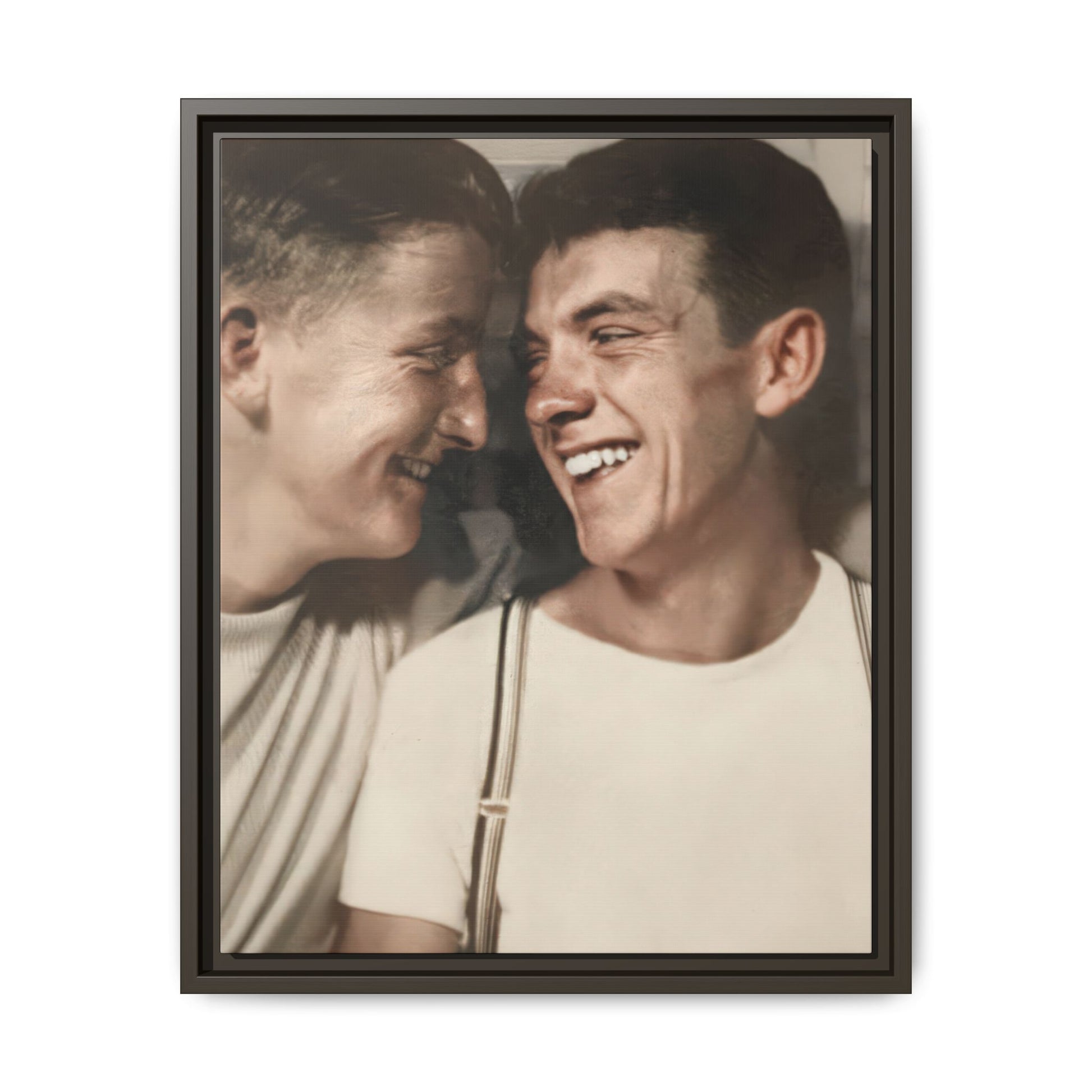 Title: Close Double Portrait of Two Men in Photobooth
