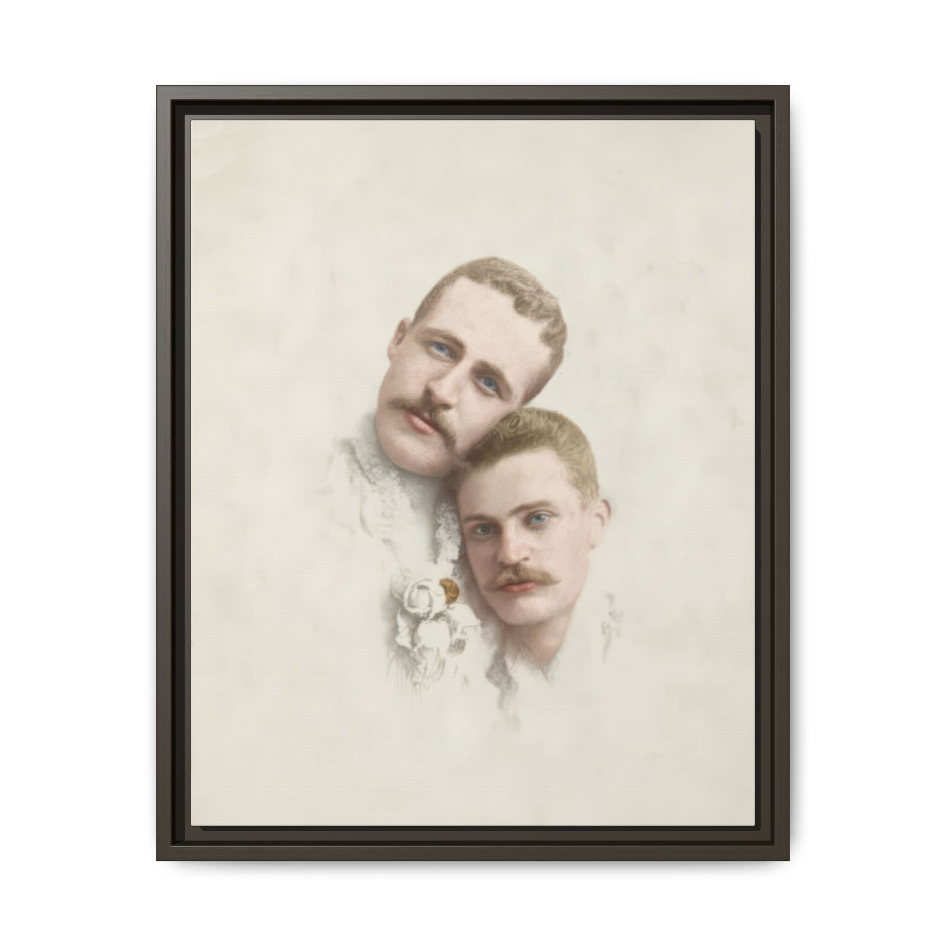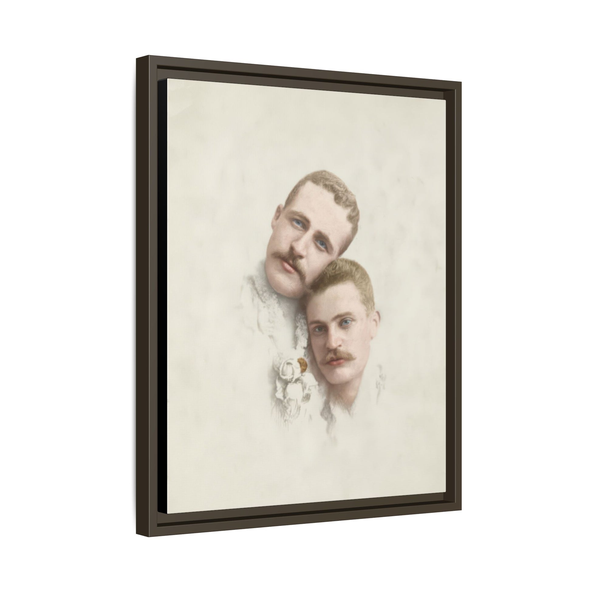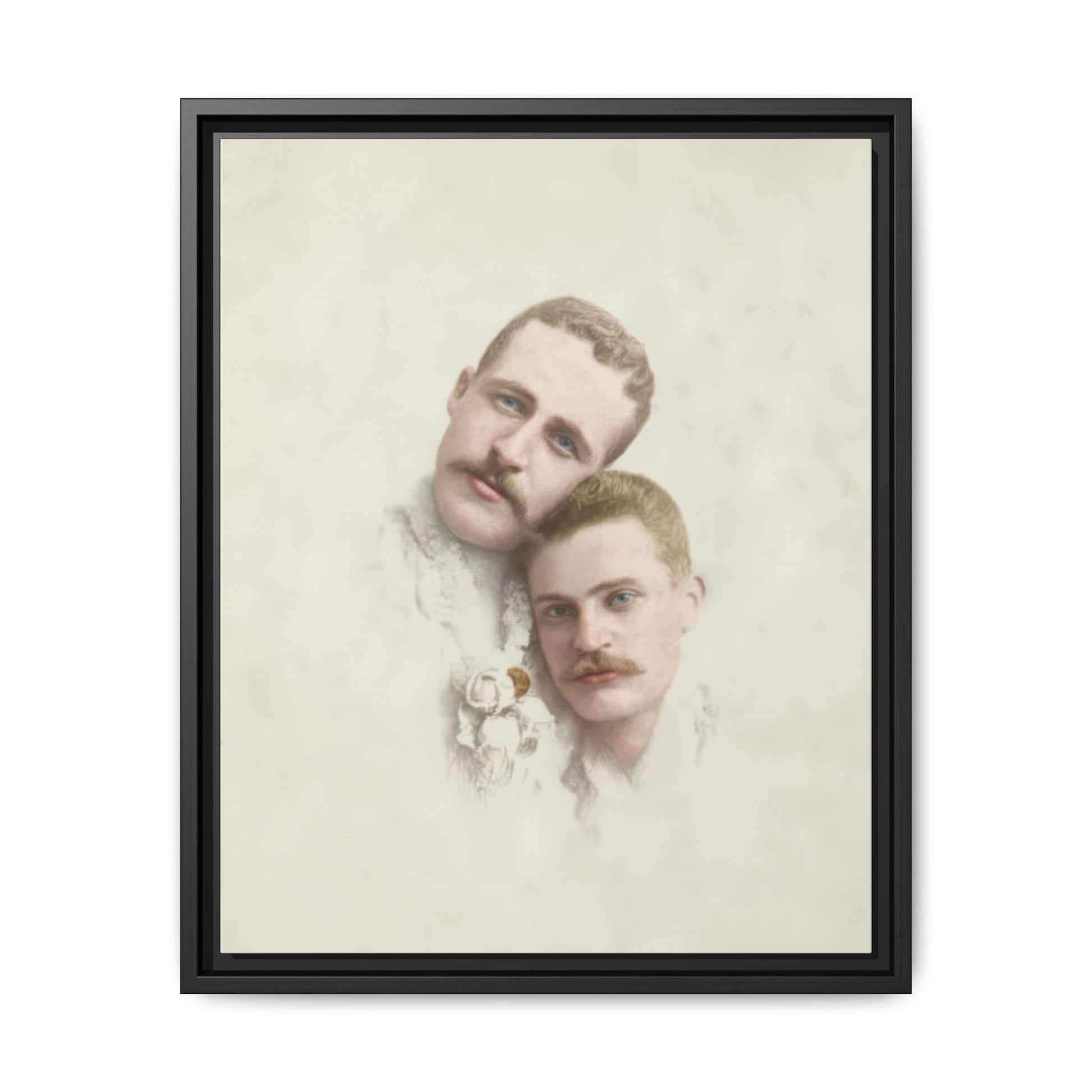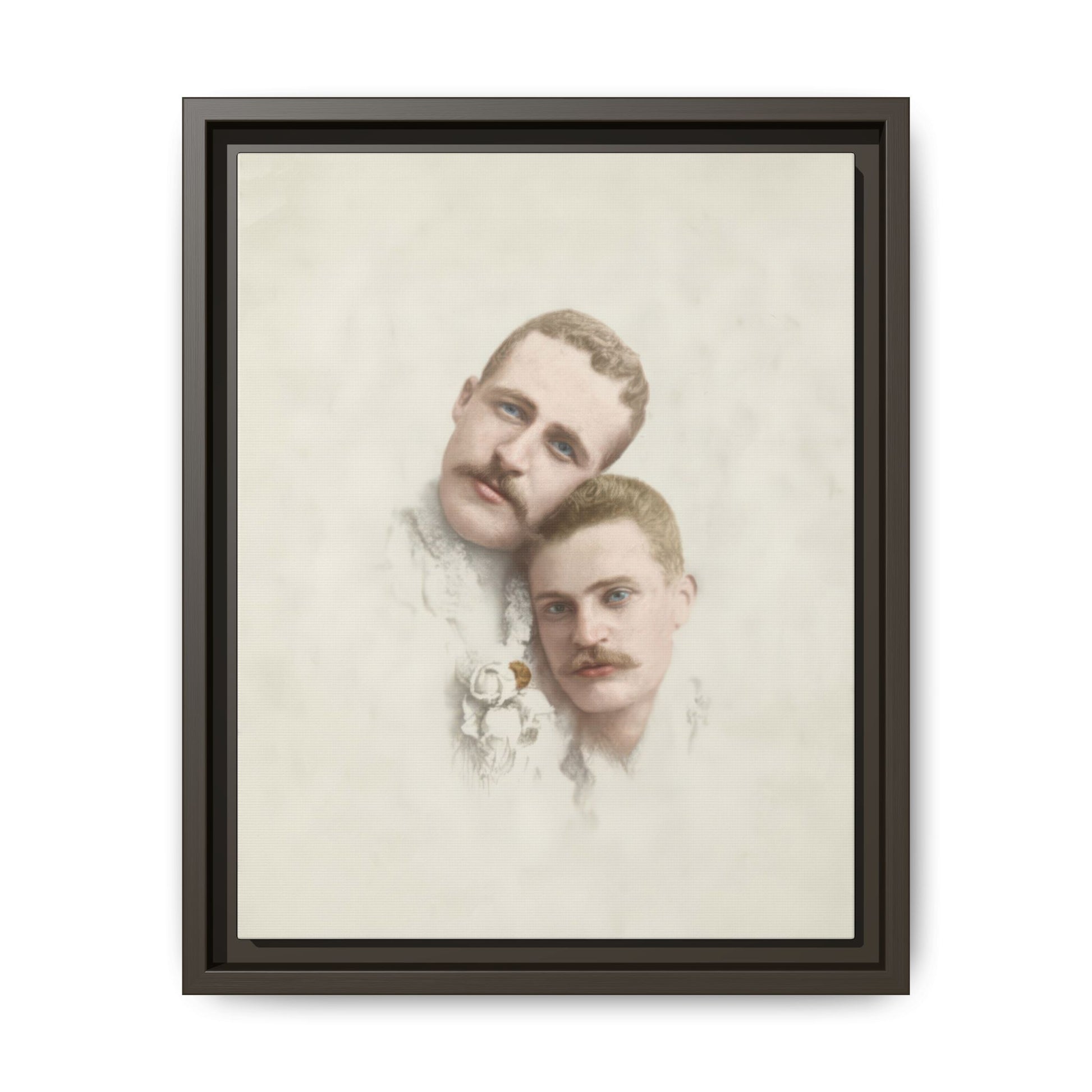 Title: Double Head-and-Shoulders Portrait of Two Men with Floral Accent