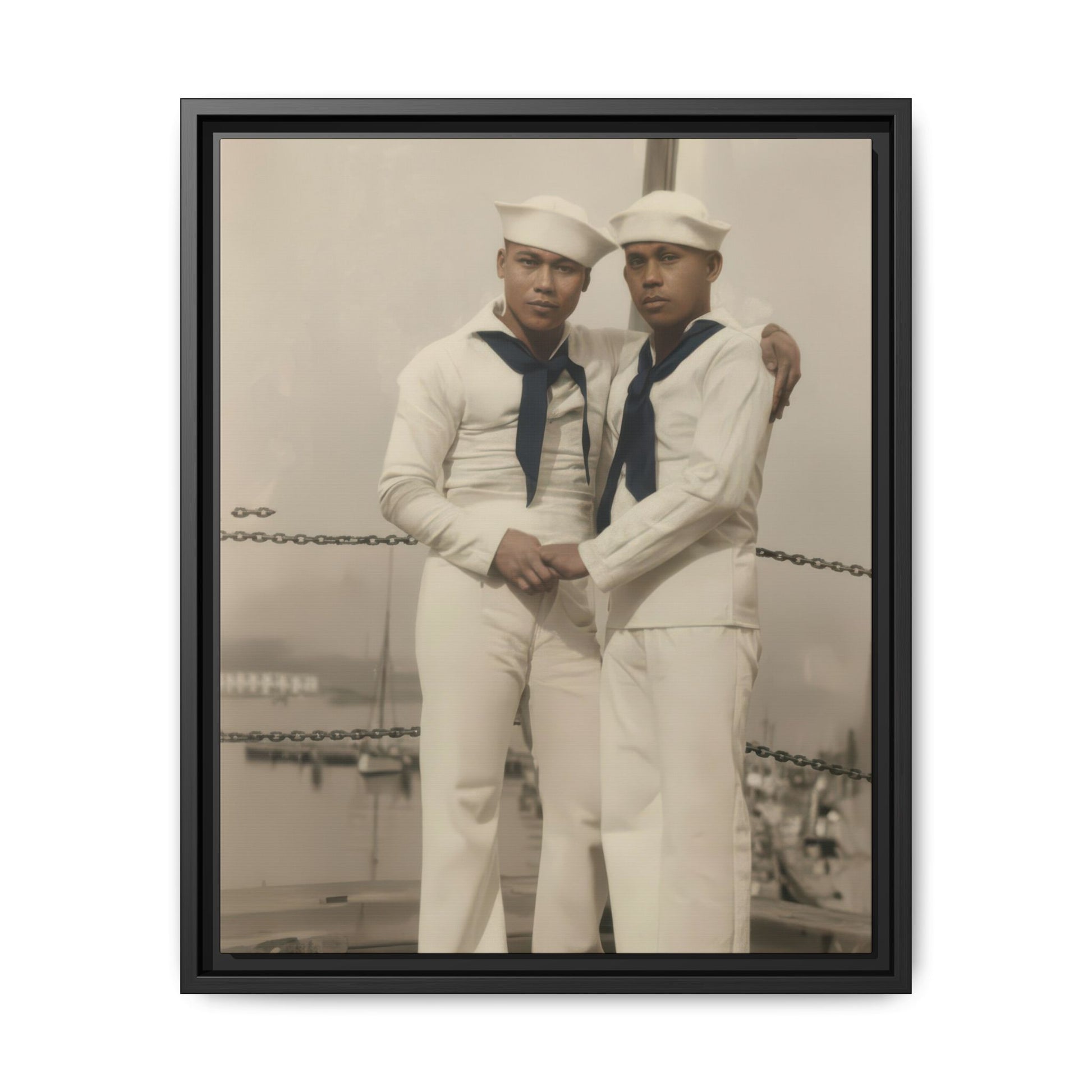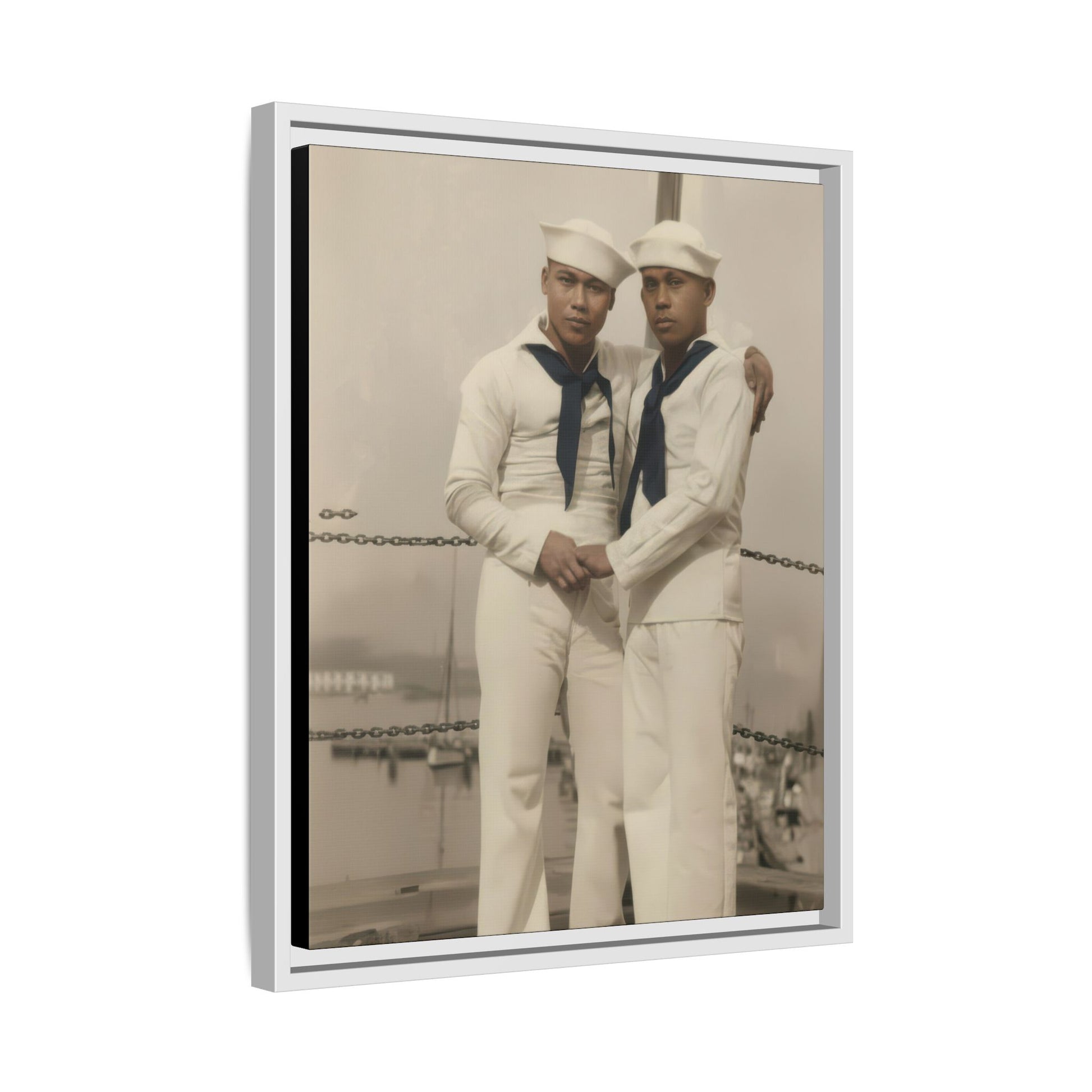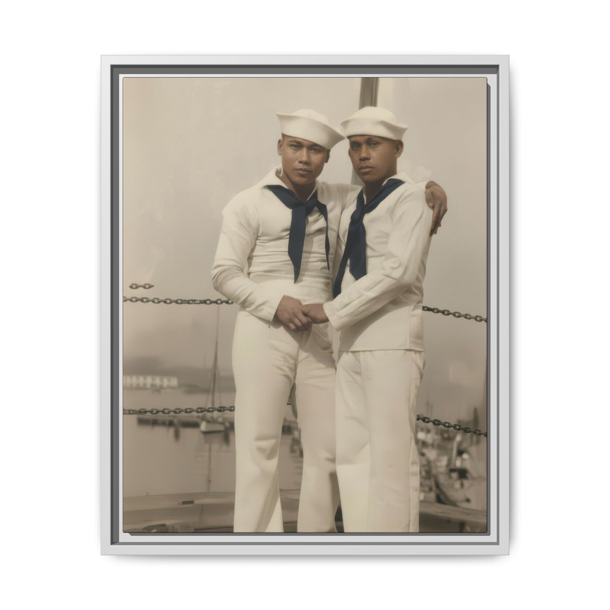 Title: Two Sailors in White Uniforms Before Seascape Studio Backdrop