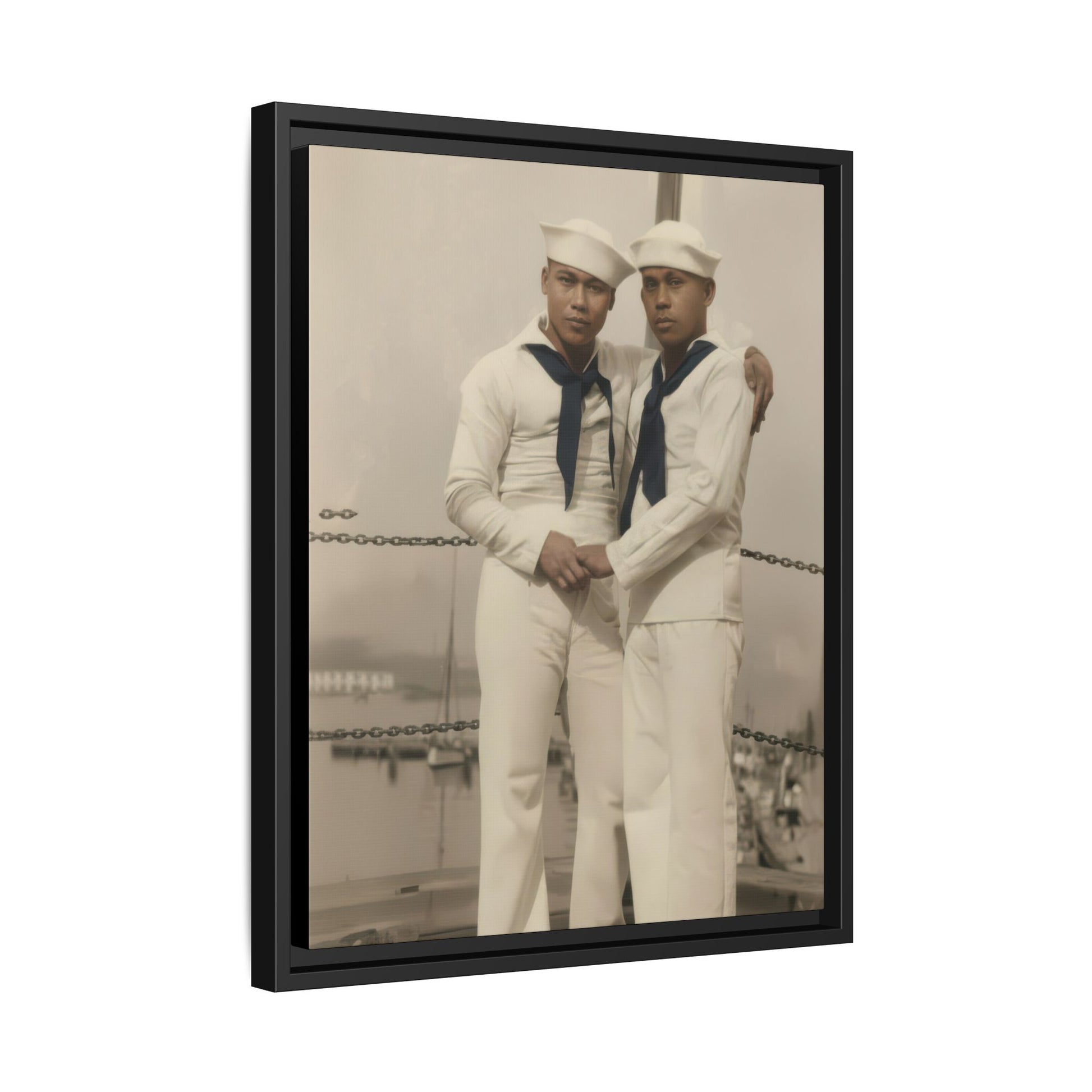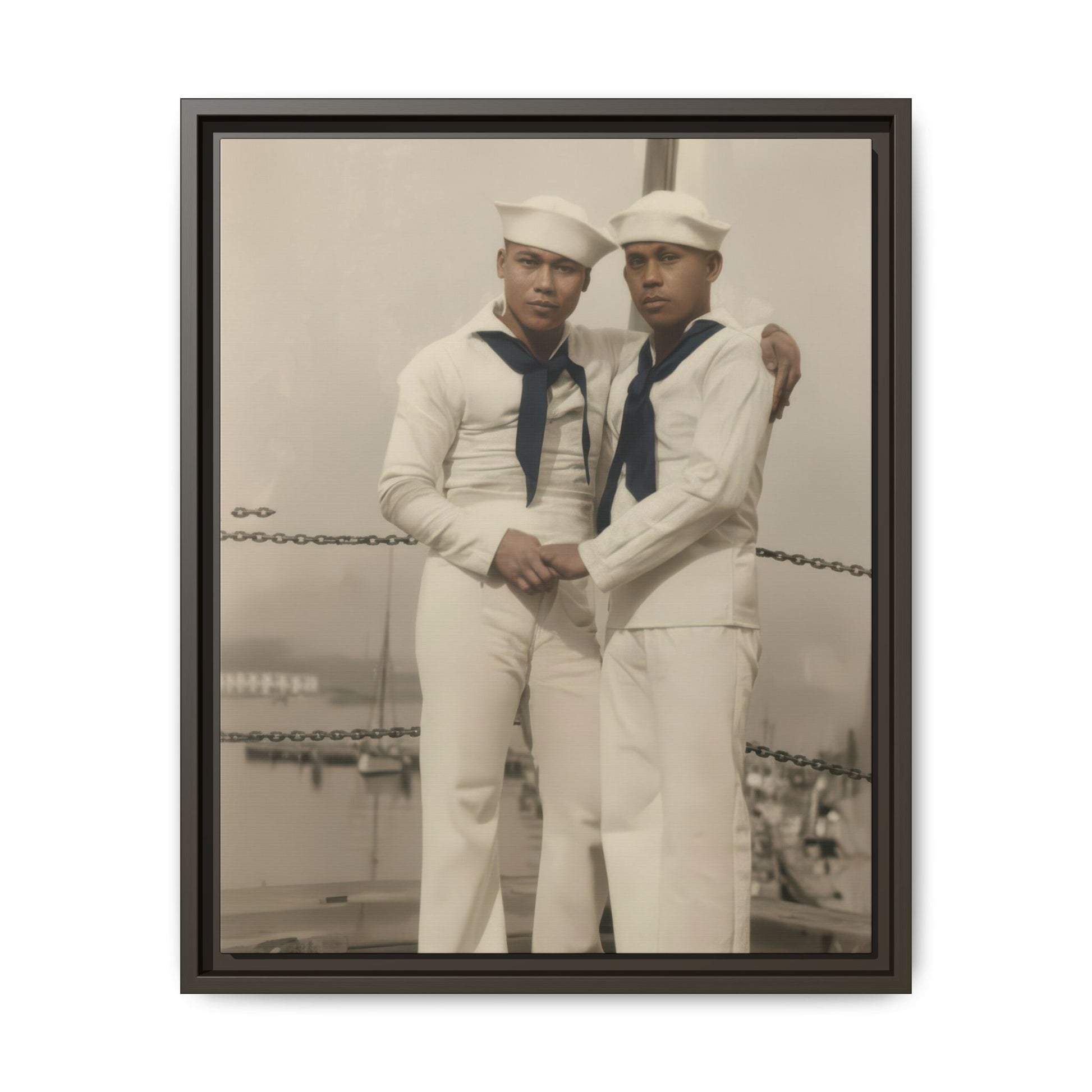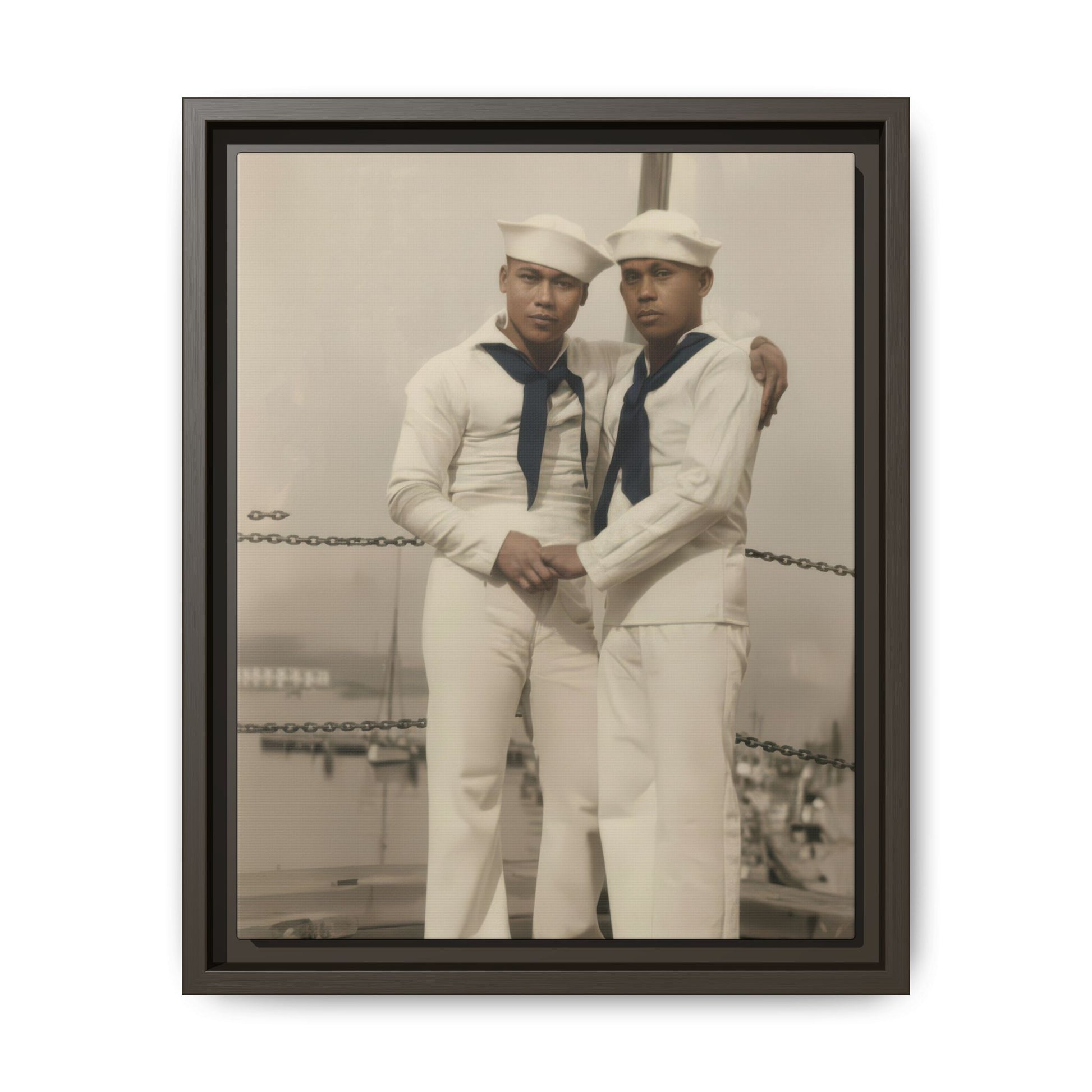 Title: Two Sailors in White Uniforms Before Seascape Studio Backdrop