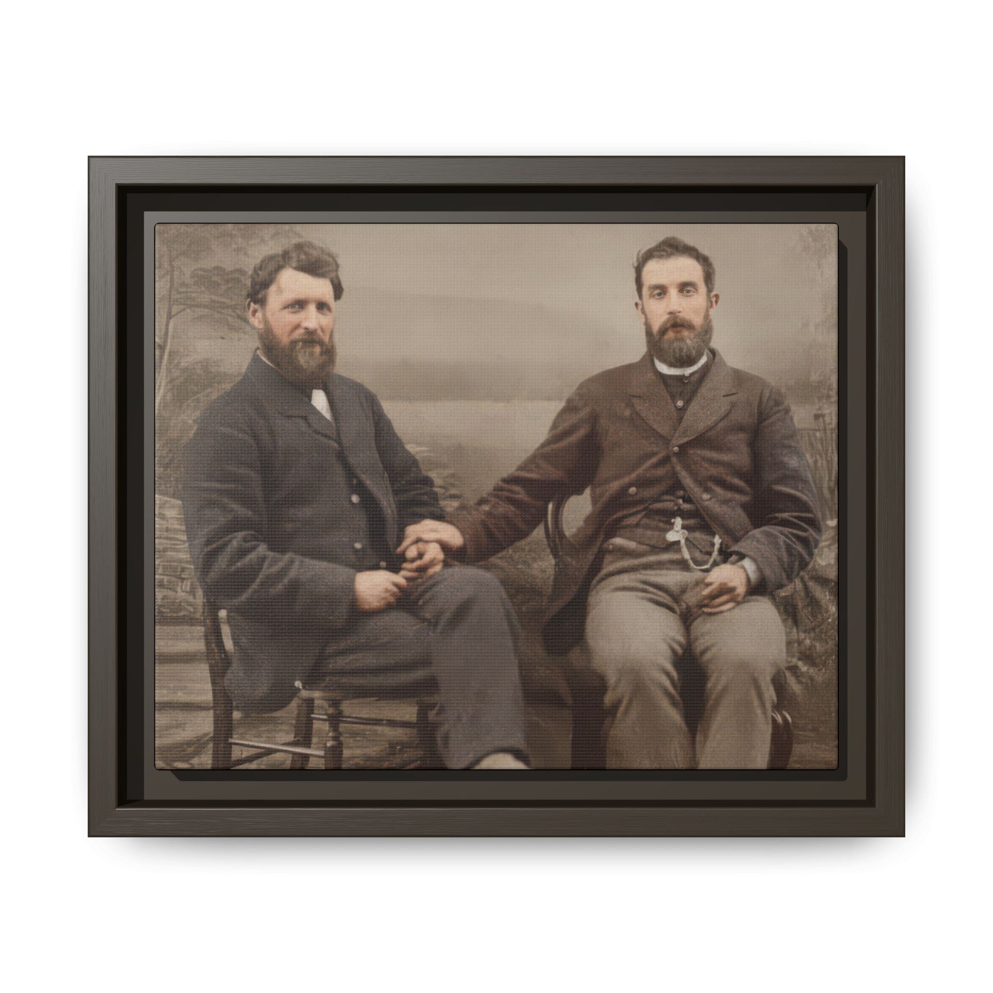Title: Two Bearded Men Seated Before a Painted Landscape Backdrop