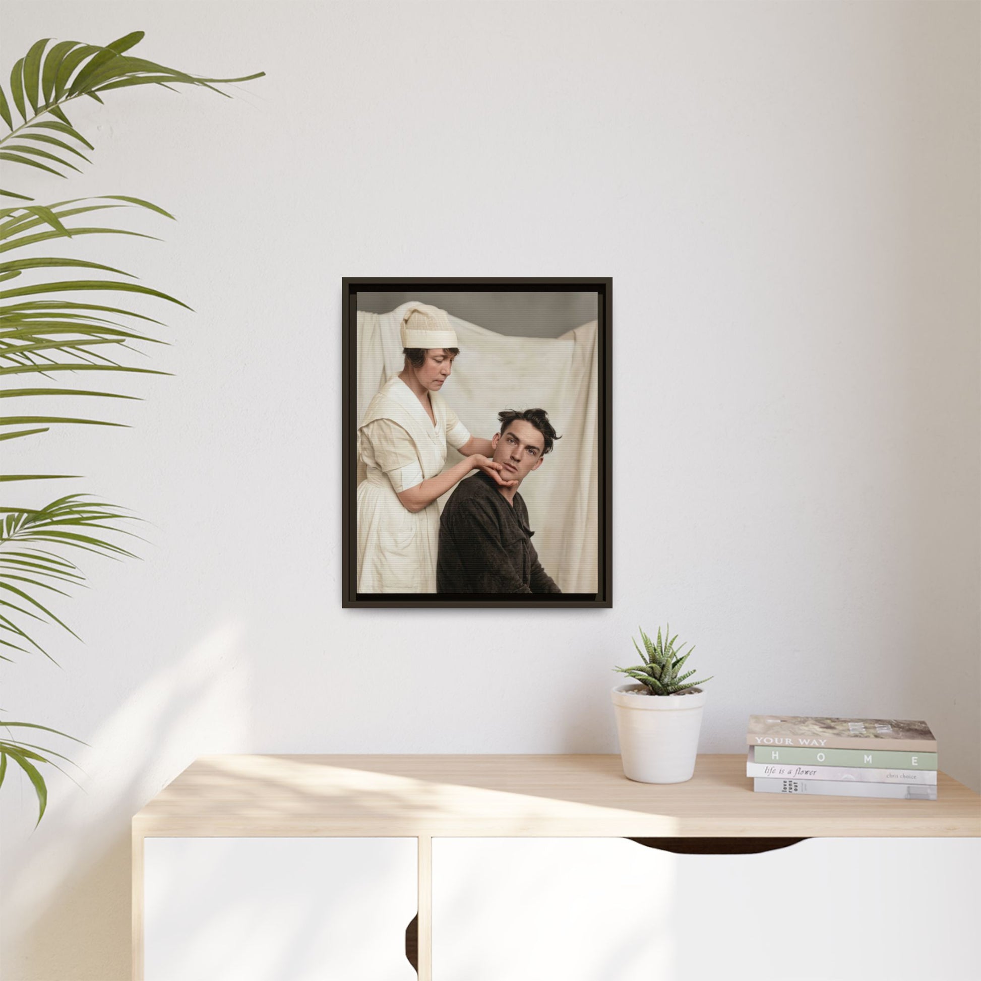 The image displays a neutral grayscale tonal range, moderate contrast, and a matte surface characteristic of gelatin silver prints on developing-out paper. This process dominated professional and vernacular photography in the early 20th century. The controlled composition and plain background suggest a staged interior setting, potentially medical or studio-based. During the 1910s–1920s, photography was widely used to document professional roles and personal experiences, facilitated by the increased availability of commercial studio services and portable cameras. The absence of inscriptions, studio imprints, or mounts limits precise attribution. Research is constrained by missing provenance.