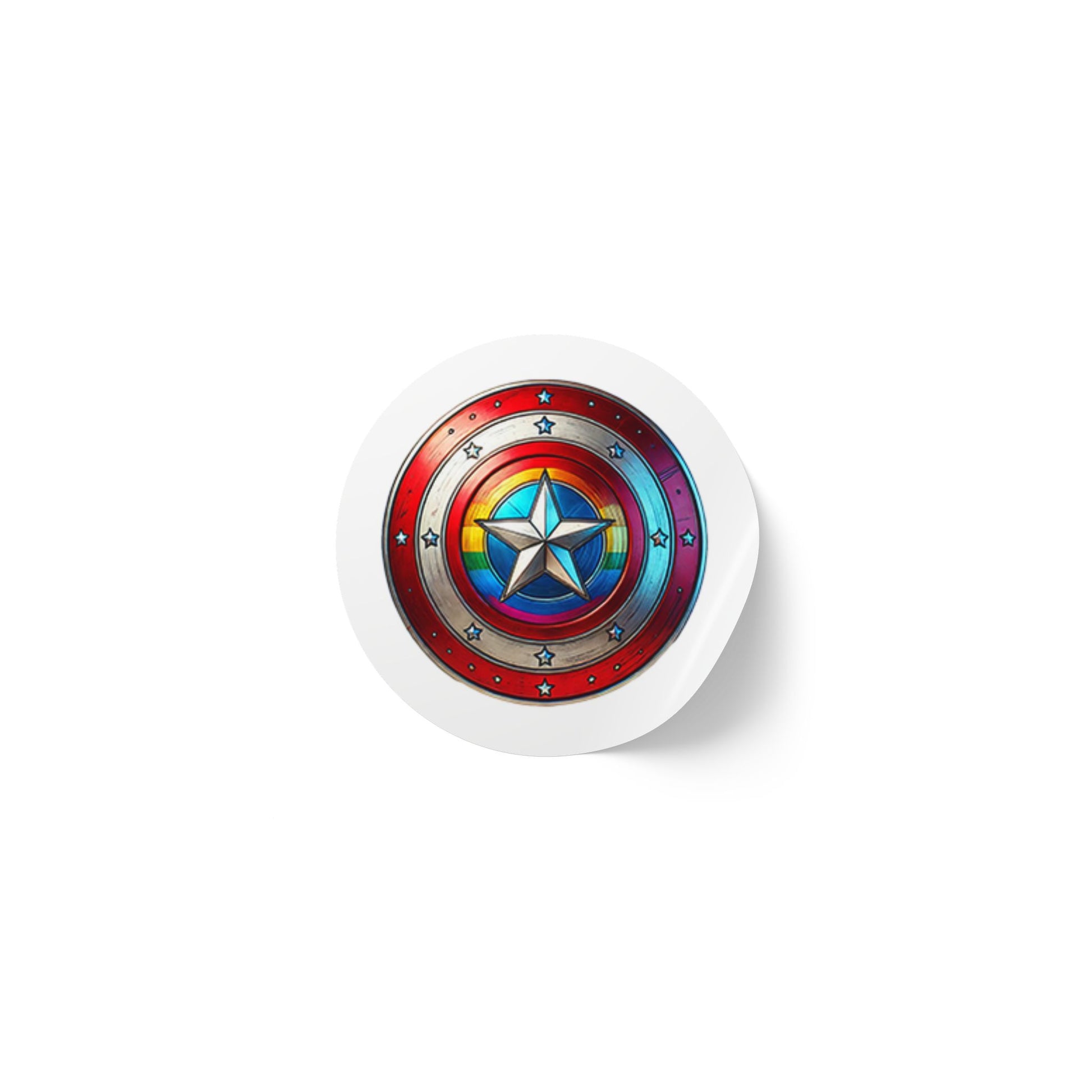 - A vibrant shield featuring a metallic five-pointed star surrounded by a rainbow gradient band, symbolizing pride and unity.