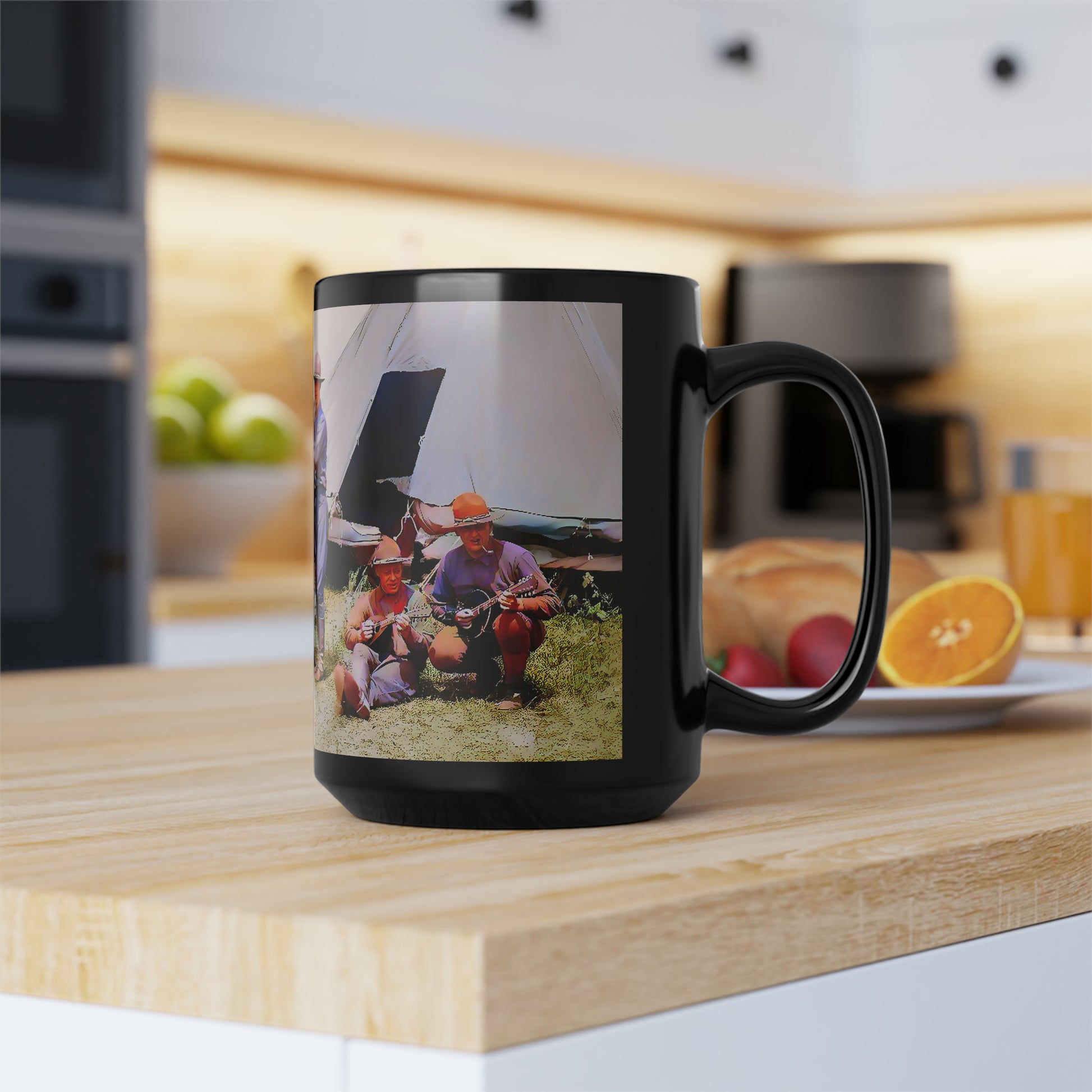 These black mugs come in one size – 15oz (0.44l) – plenty for morning caffeine boosts and hot cups of tea on a rainy day. They're easy to grip and feel sturdy thanks to the C-shaped handle. They are printed on black ceramic material in picture-perfect quality with a glossy finish.