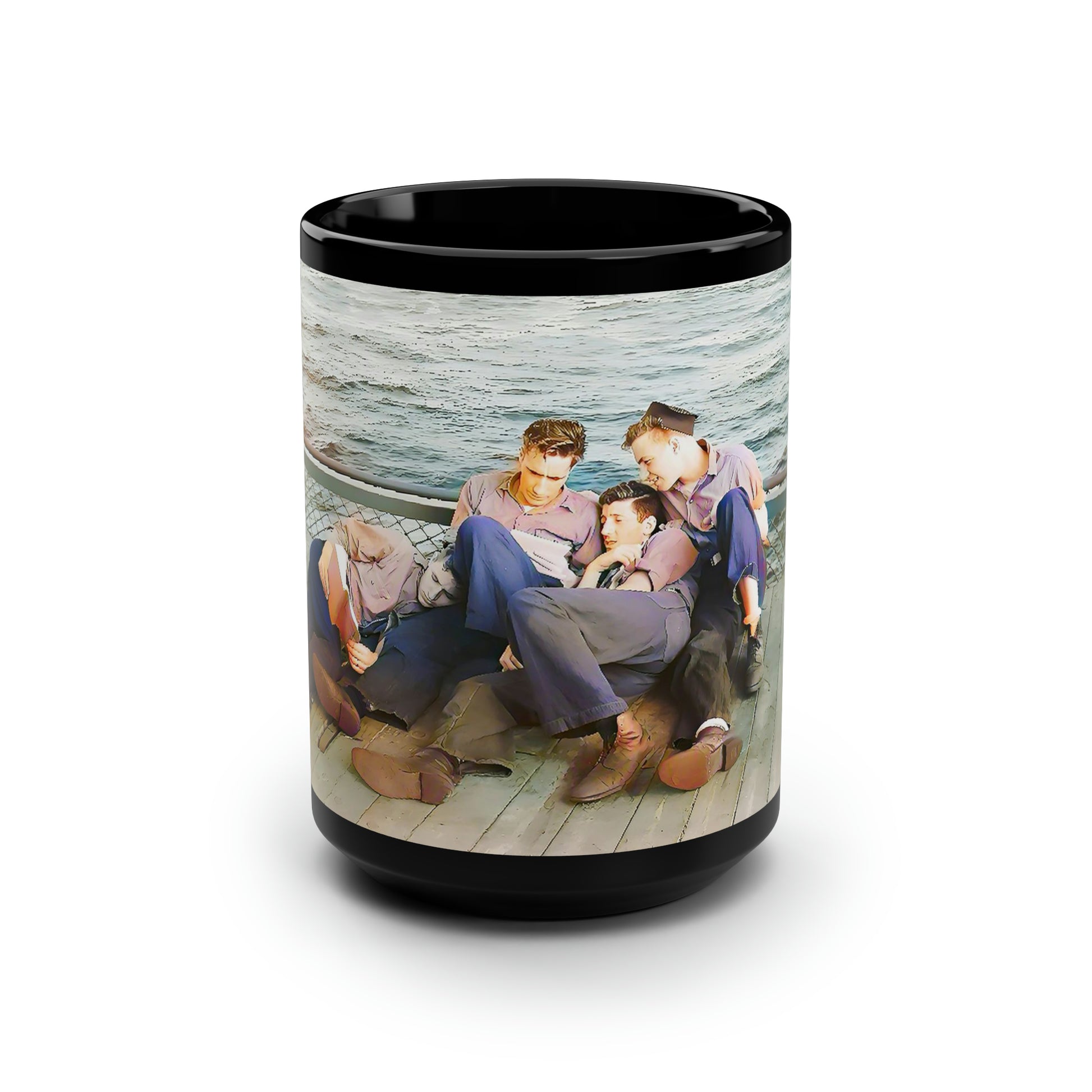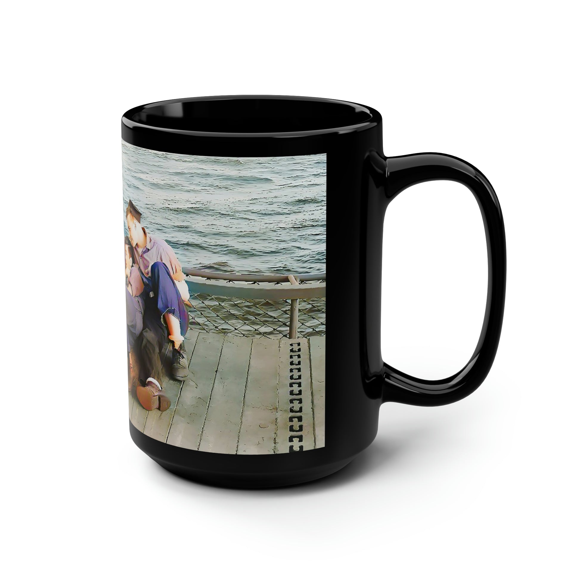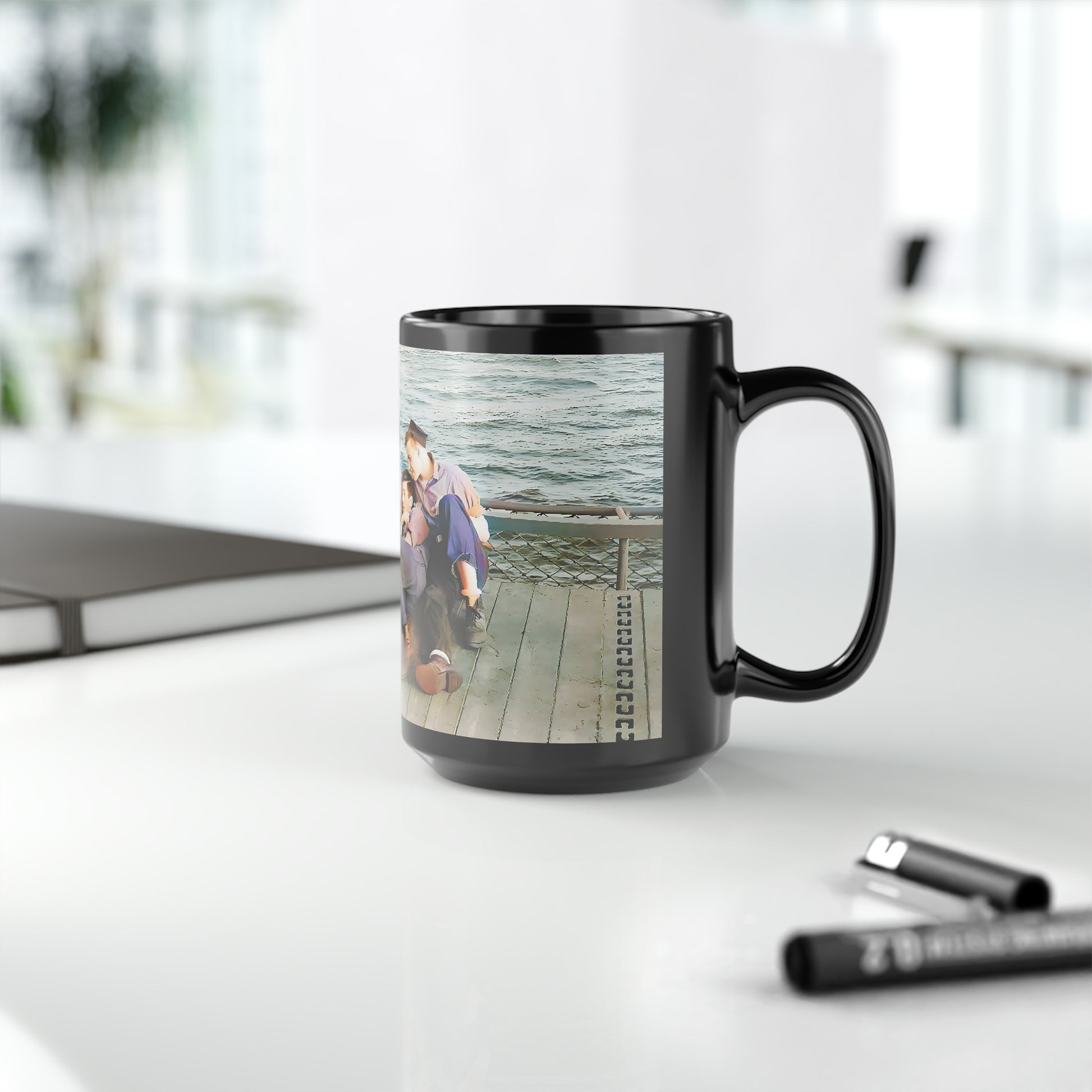 These black mugs come in one size – 15oz (0.44l) – plenty for morning caffeine boosts and hot cups of tea on a rainy day. They're easy to grip and feel sturdy thanks to the C-shaped handle. Add more personality by decorating them with your original designs. They'll be printed on the black ceramic material in picture-perfect quality with a glossy finish.