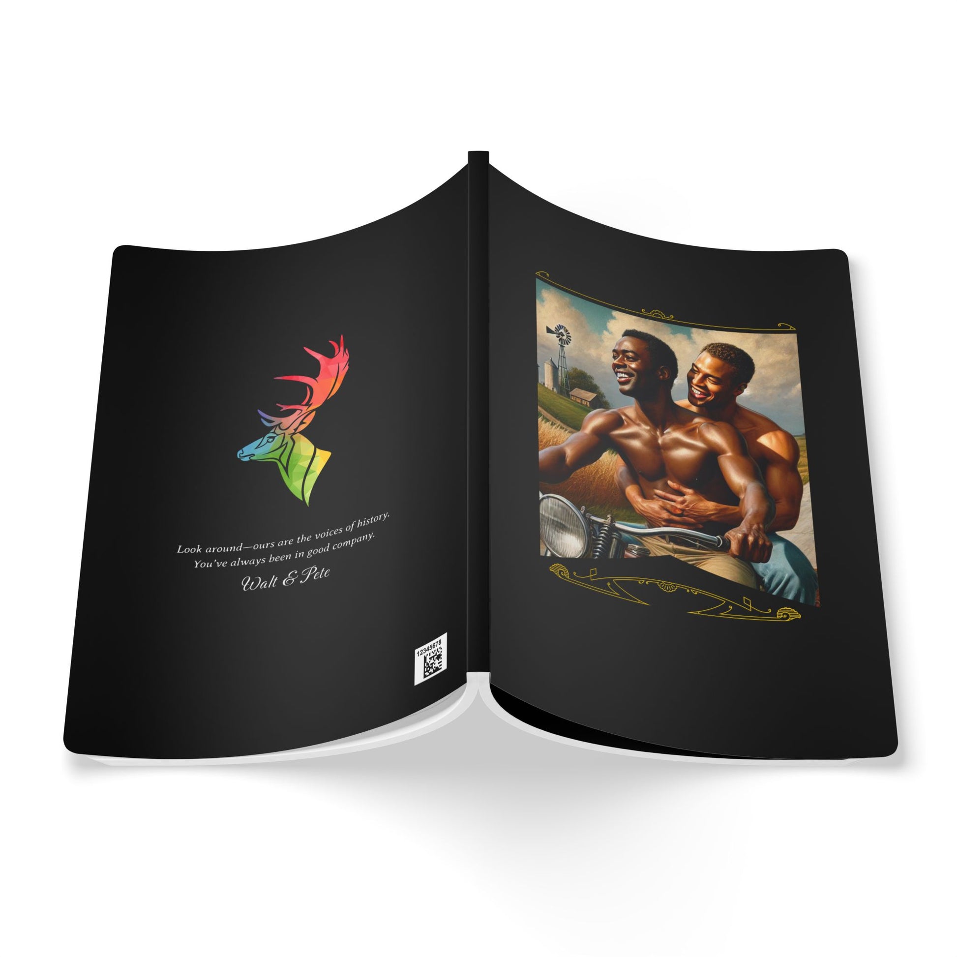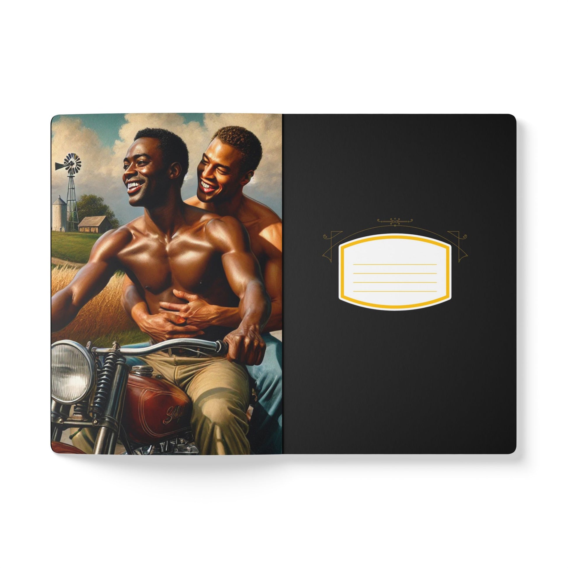 Capture the essence of timeless love and adventure with the Missing Art Studies - Grant 028 softcover journal. Inspired by the iconic works of Grant Wood, the cover illustration features a breathtaking rural scene of two men embracing while riding a vintage motorcycle, their joy radiating against a classic Midwestern landscape. This journal is more than a notebook—it is a celebration of resilience, love, and freedom.