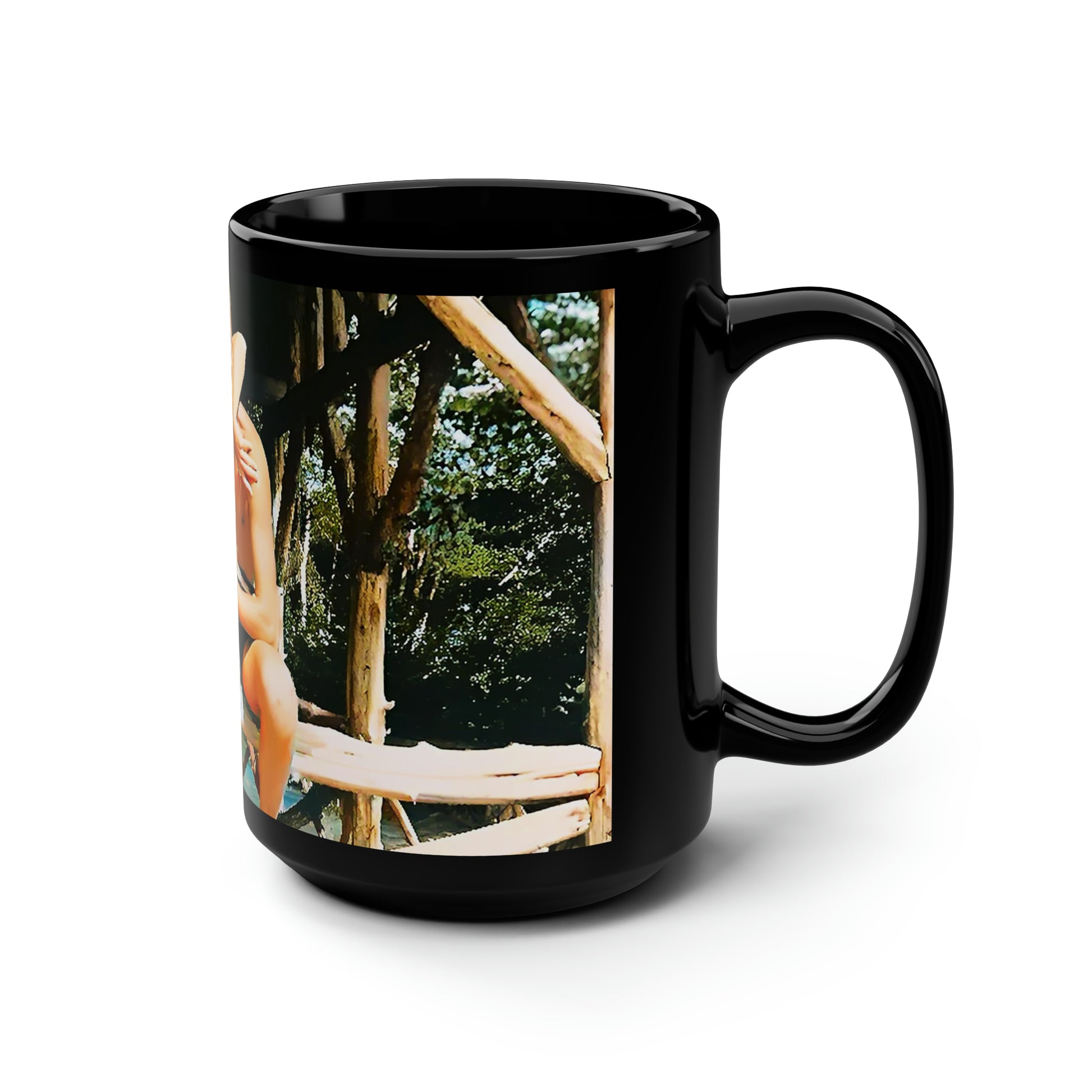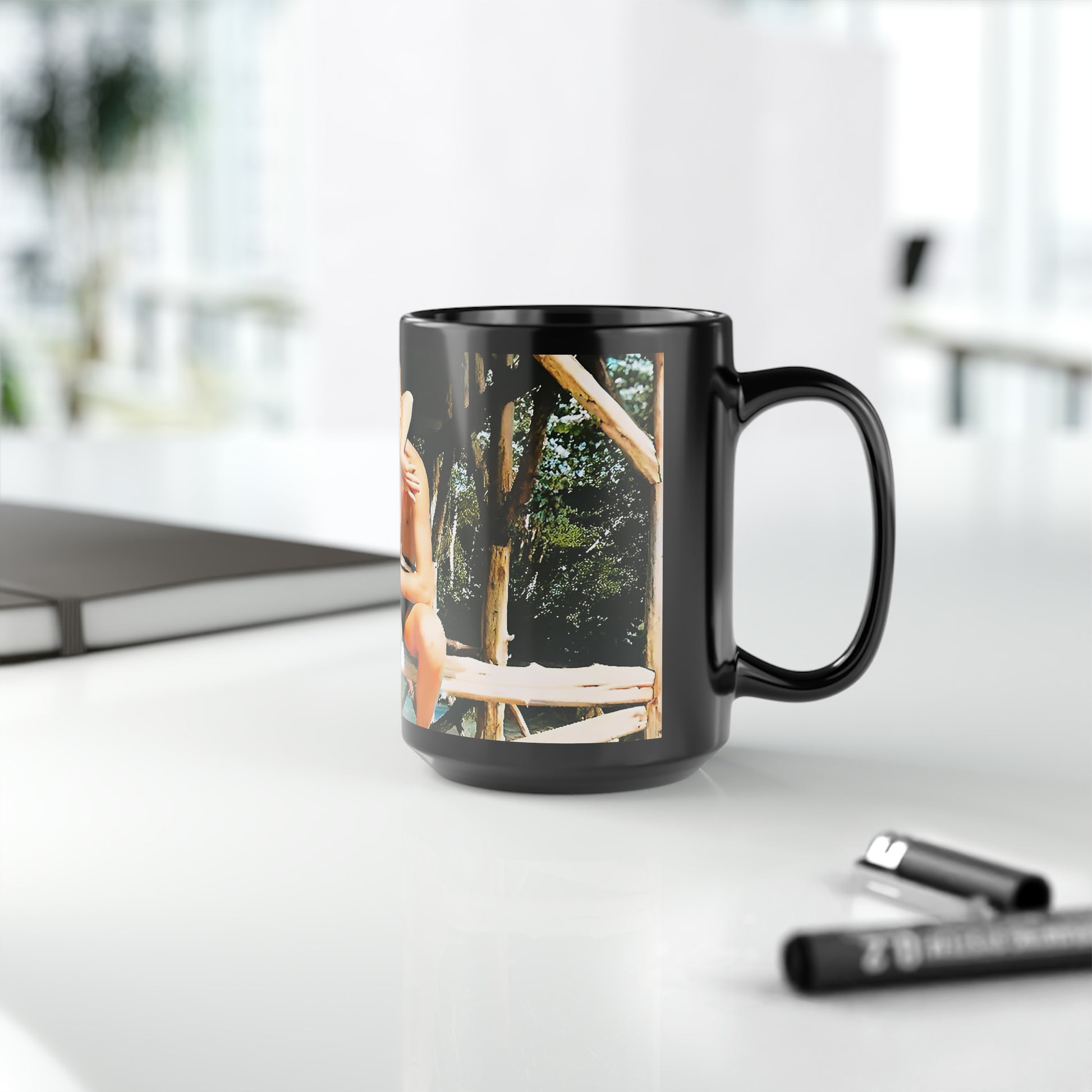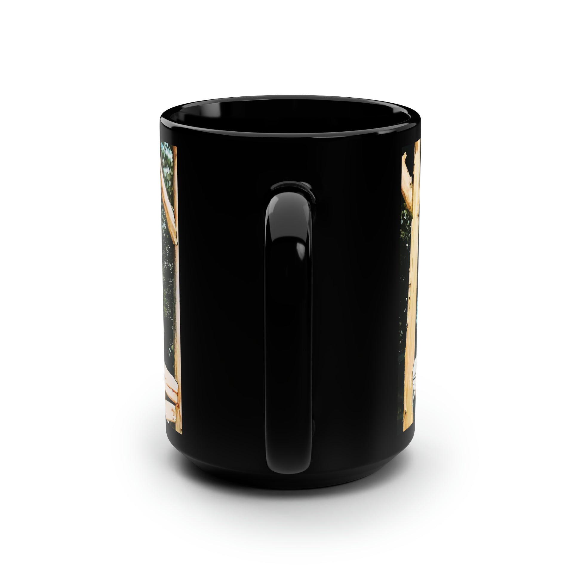 These black mugs come in one size – 15oz (0.44l) – plenty for morning caffeine boosts and hot cups of tea on a rainy day. They're easy to grip and feel sturdy thanks to the C-shaped handle. They are printed on black ceramic material in picture-perfect quality with a glossy finish.