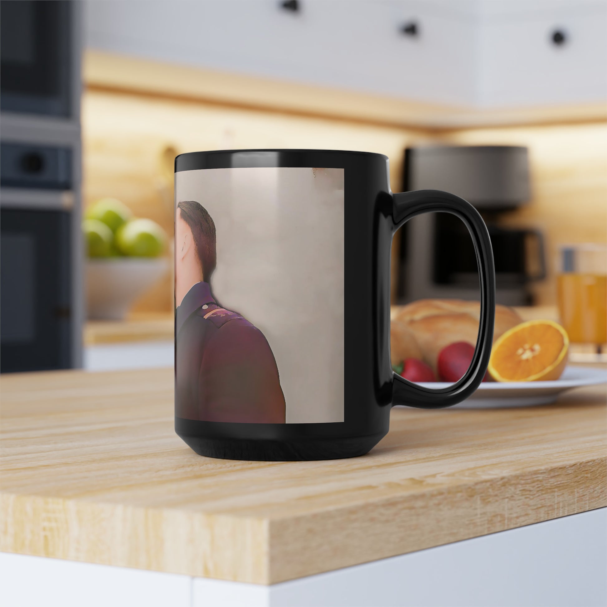 These black mugs come in one size – 15oz (0.44l) – plenty for morning caffeine boosts and hot cups of tea on a rainy day. They're easy to grip and feel sturdy thanks to the C-shaped handle. They are printed on black ceramic material in picture-perfect quality with a glossy finish.
