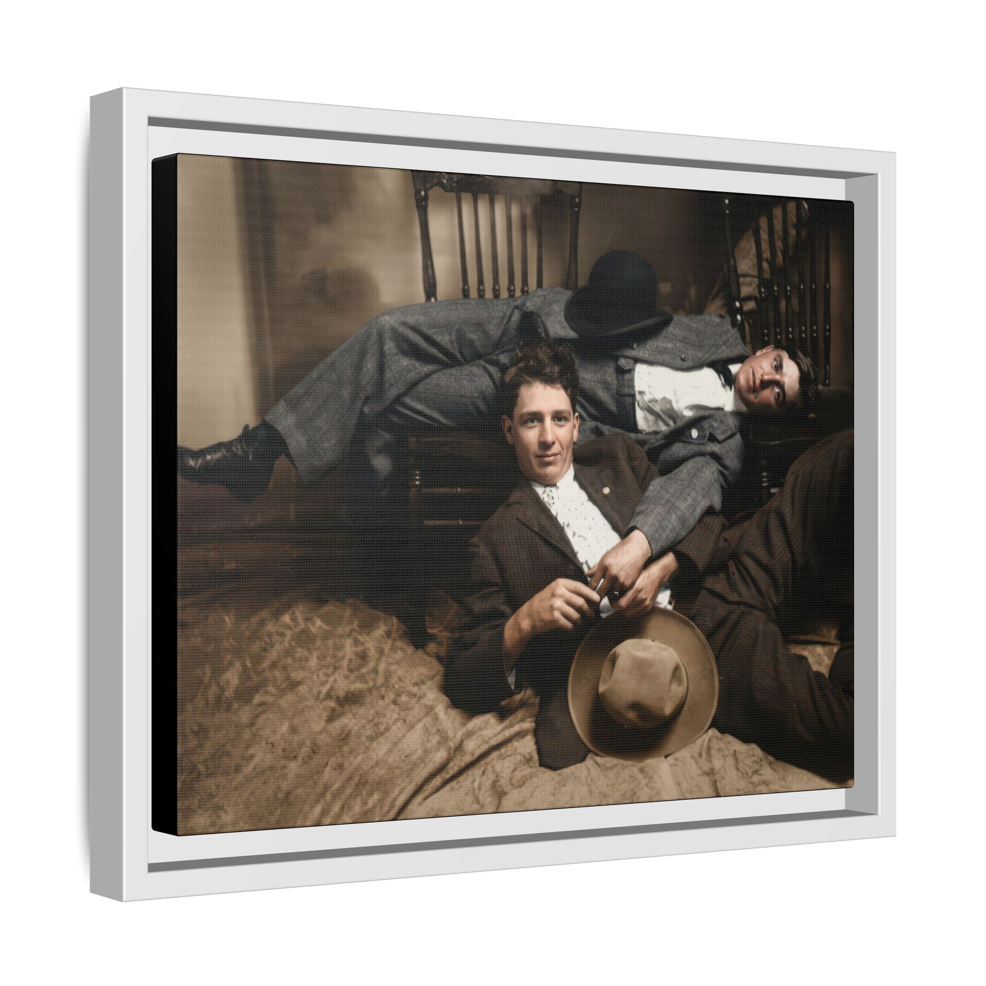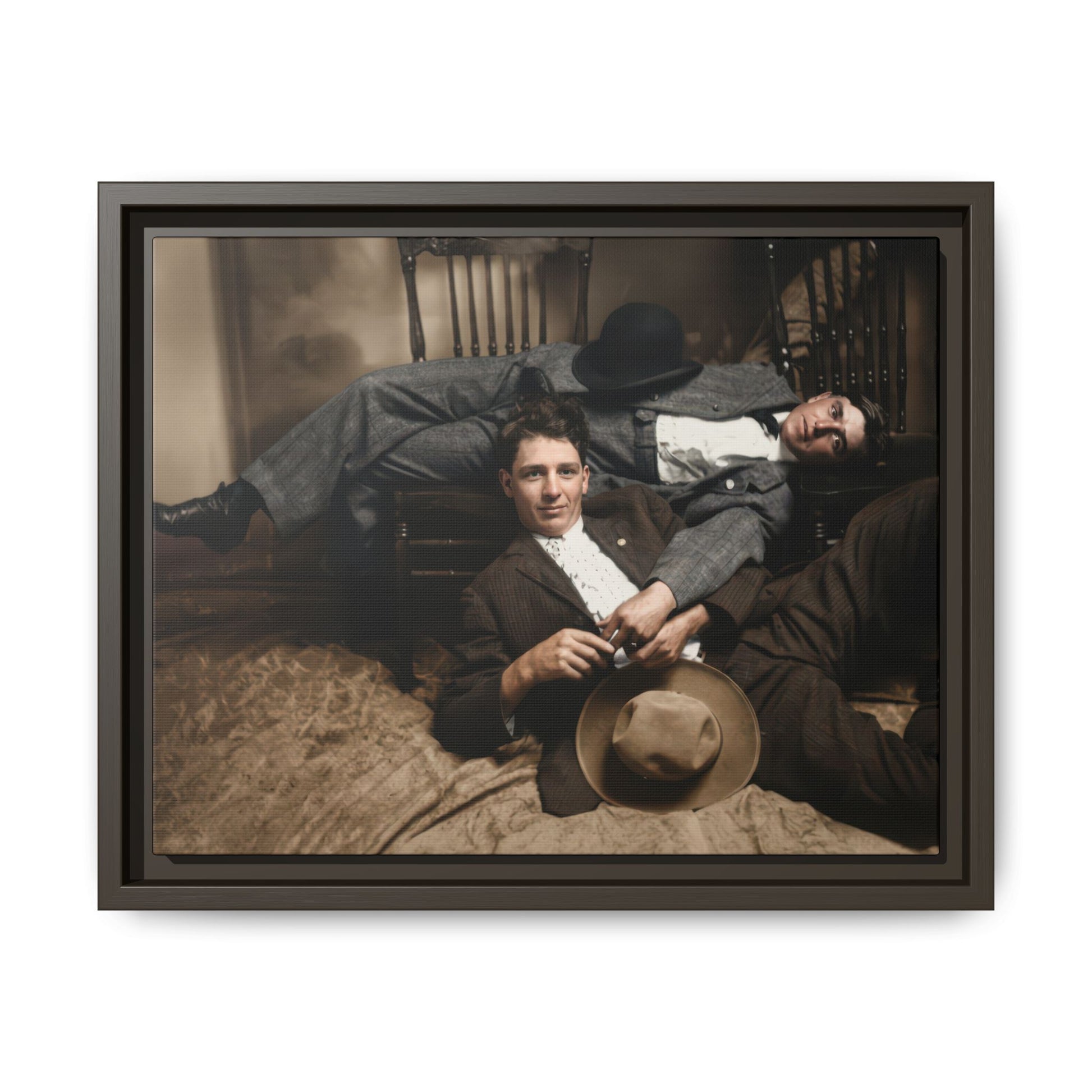 The image presented here has undergone careful digital preservation using contemporary restoration technologies, including AI-assisted stabilization, tonal repair, and historical colorization. All interventions were guided by archival photo conservation principles and fine-art print standards, with the aim of maintaining period character, photographic softness, and material authenticity while improving legibility for modern viewers. It stands as a testament both to the layered ways intimacy was lived and recorded in the past and to evolving methods used to safeguard fragile visual history in the present.