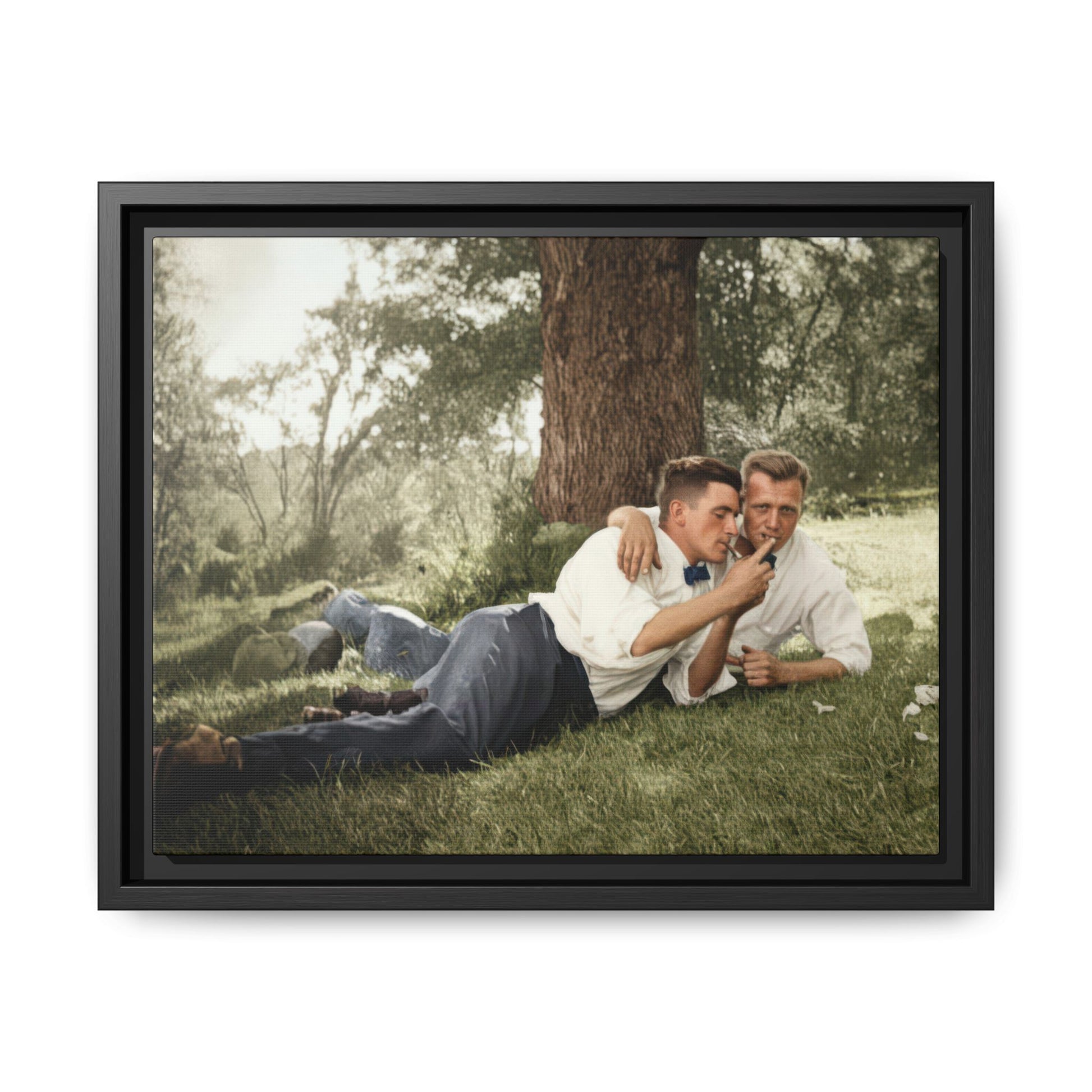 The image presented here has undergone careful digital preservation using contemporary restoration technologies, including AI-assisted stabilization, tonal repair, and historical colorization. All interventions were guided by archival photo conservation principles and fine-art print standards, with the aim of maintaining period character, photographic softness, and material authenticity while improving legibility for modern viewers. It stands as a testament to both the layered ways intimacy was lived and recorded in the past and to the evolving methods used to safeguard fragile visual history in the present.