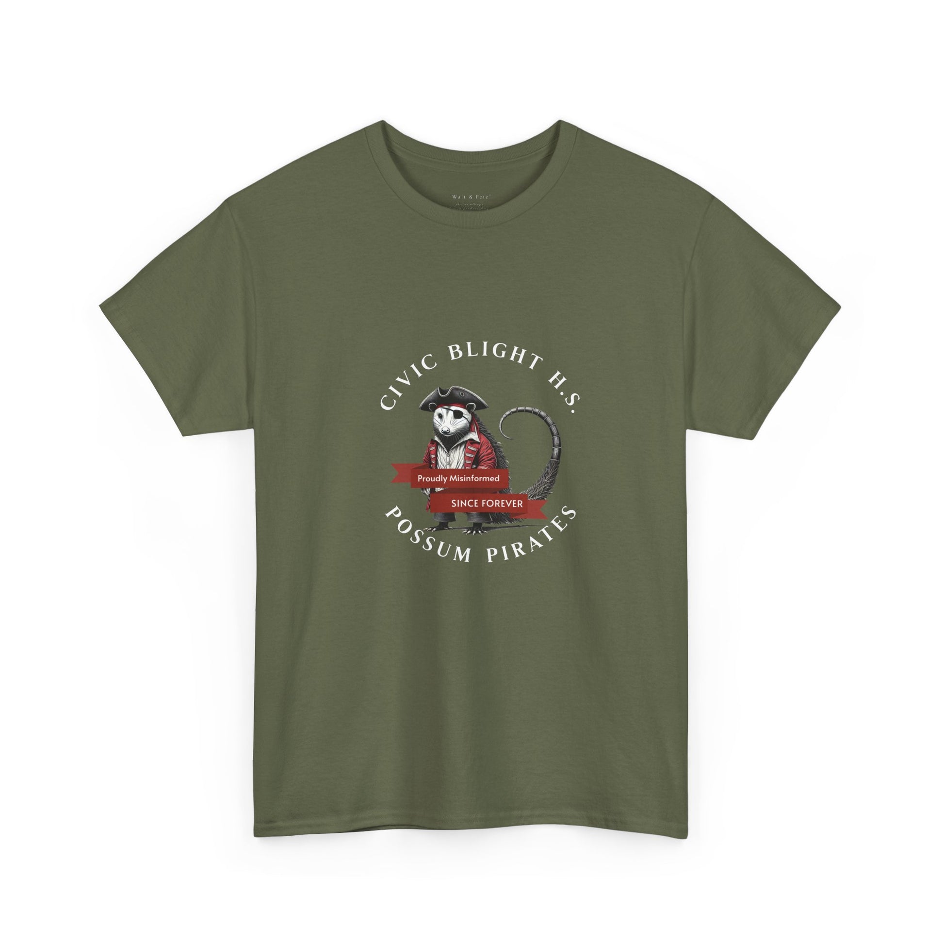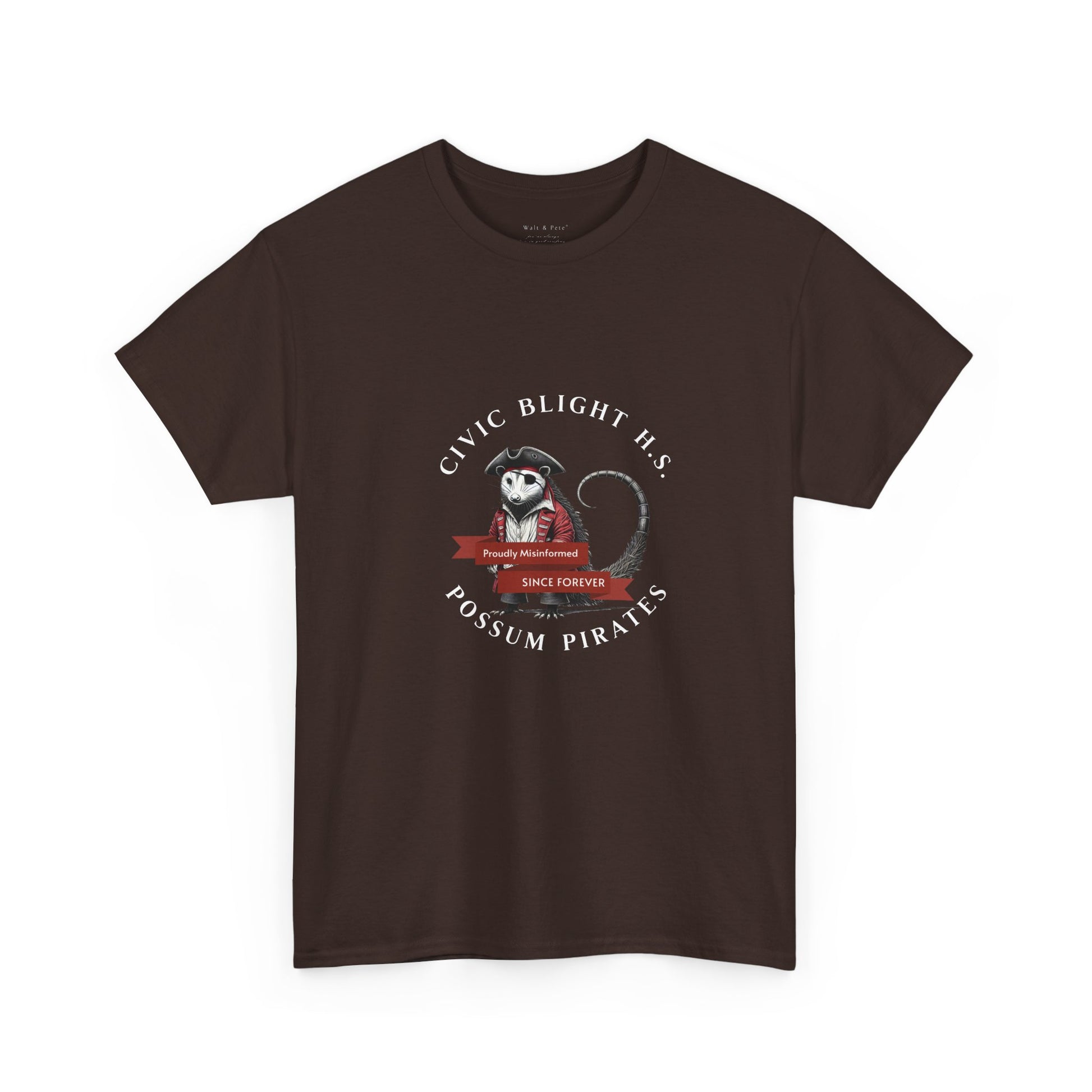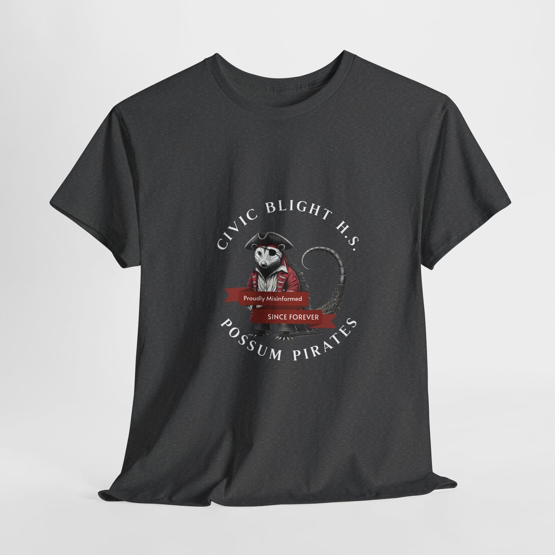 Civic Blight H.S. | Possum Pirates | H.S. Mascot T-Shirt | Proudly Misinformed, Since Forever” — Class of Never”